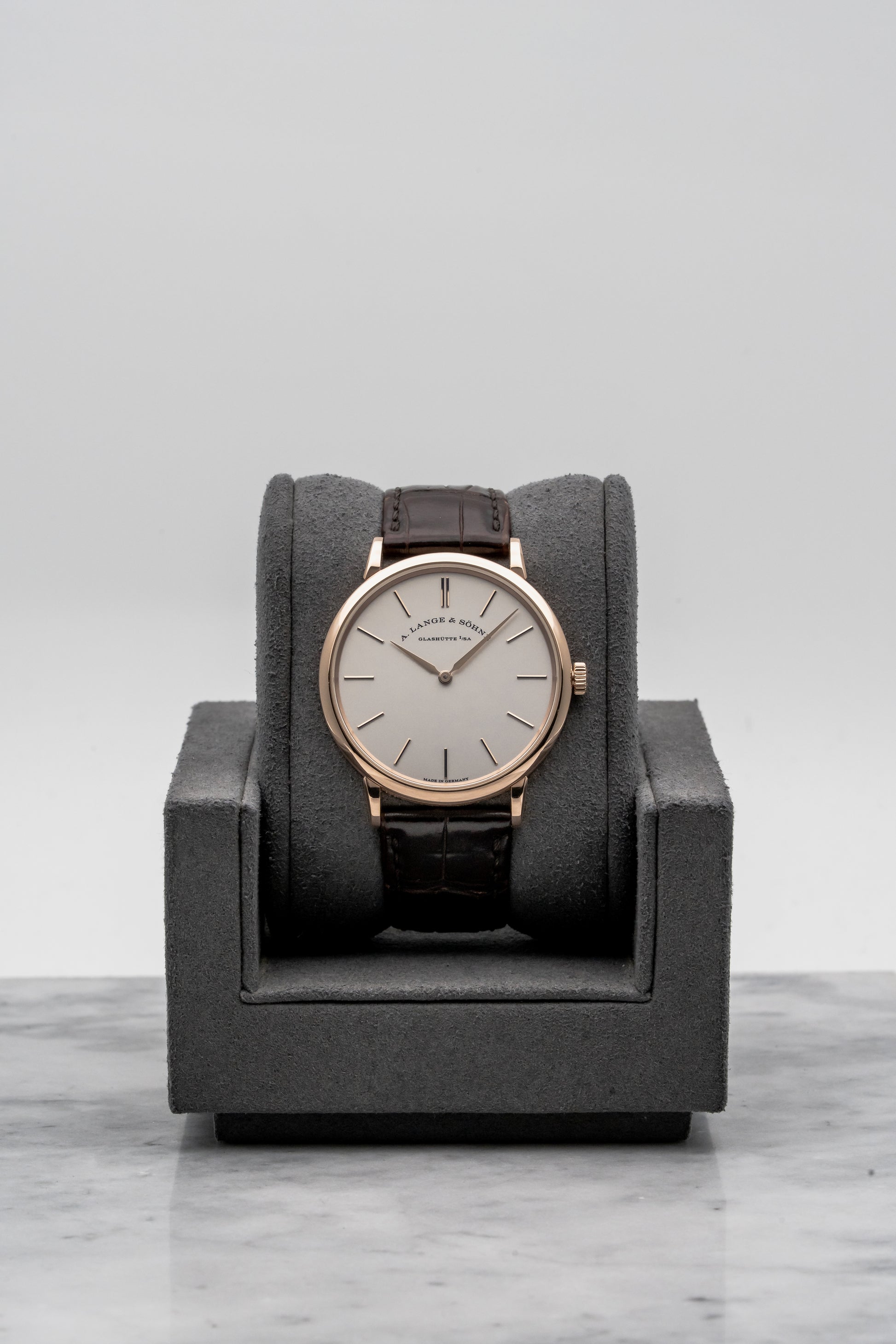 At 37mm, the Saxonia Thin wears with quiet confidence. The rose gold case adds warmth and softness, while the slim profile allows the watch to disappear comfortably under a cuff. On the wrist, it feels light, calm, and perfectly resolved. This is a watch that does not seek attention, but rewards it, especially for collectors who appreciate proportion and finishing over overt complication.