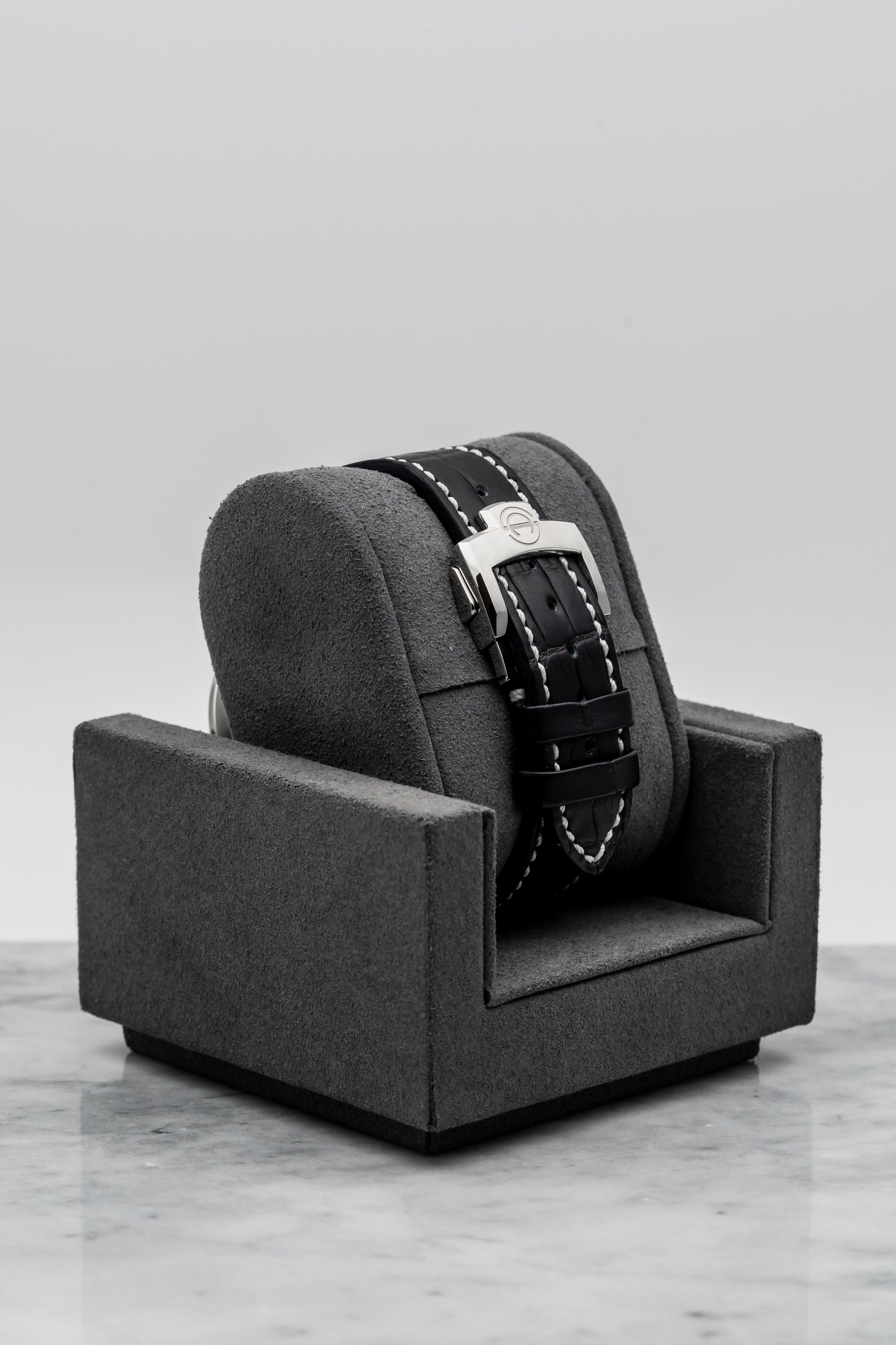 - Strap: Black Alligator Leather with Stainless Steel Folding Clasp