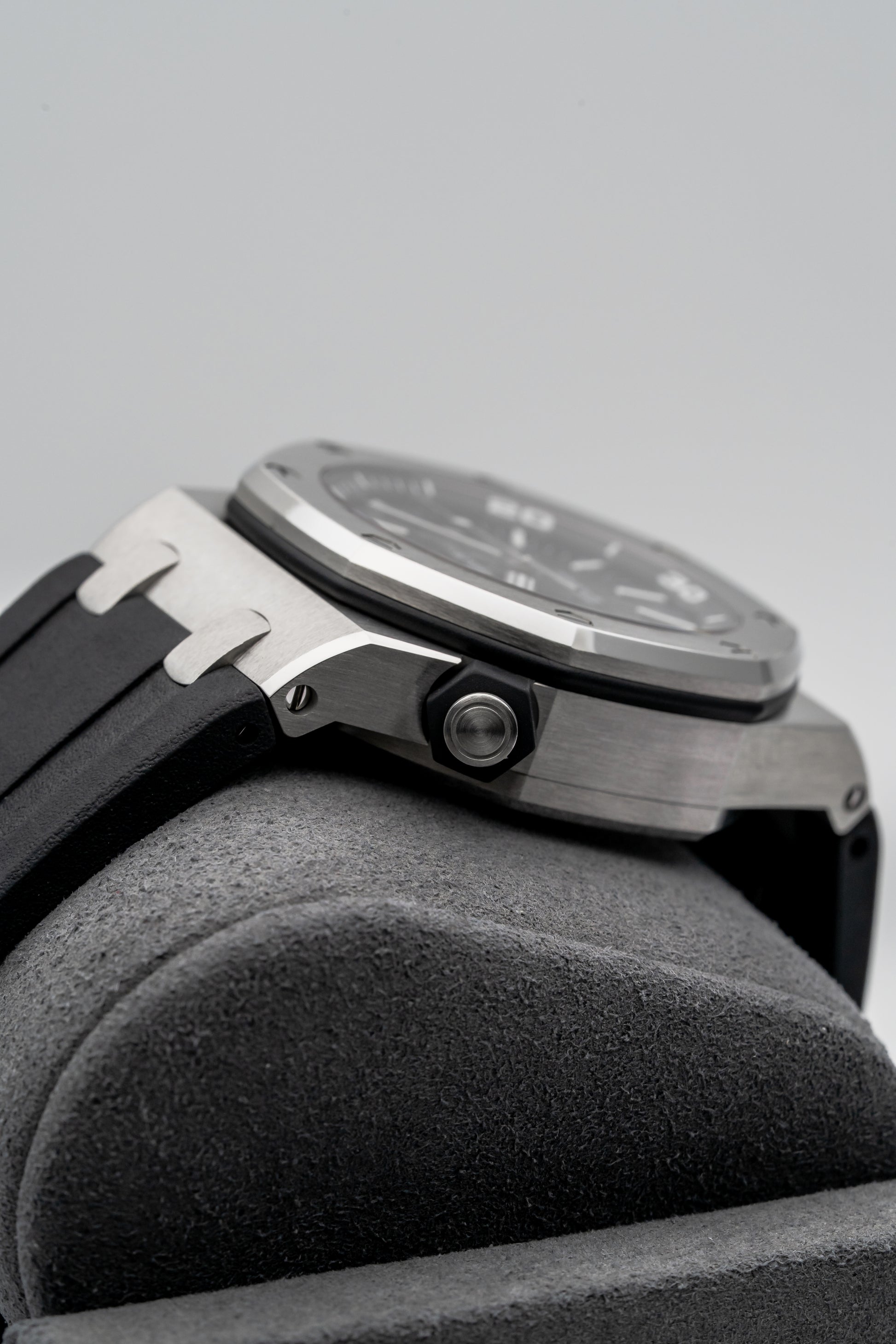 Strap: Black Rubber Strap with Stainless Steel AP Pin Buckle