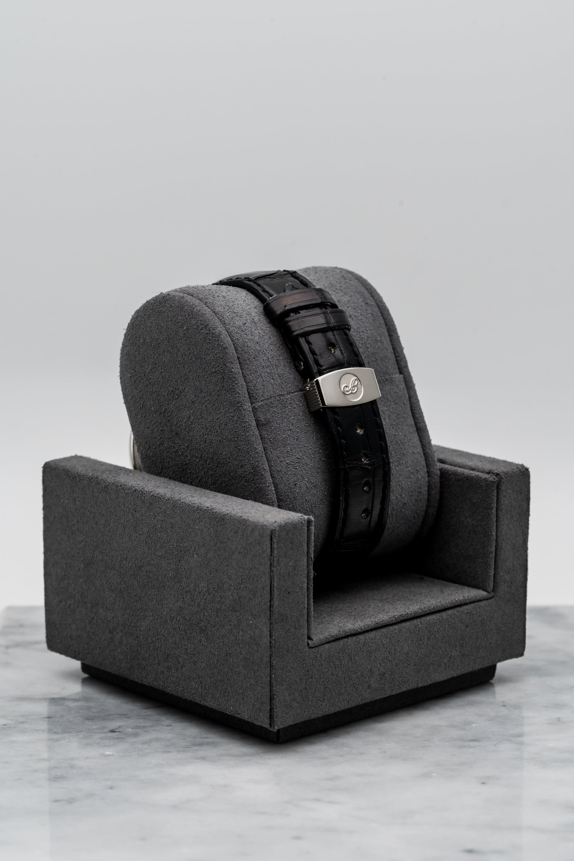- Strap: Black Leather with 18K White Gold Foldover Clasp