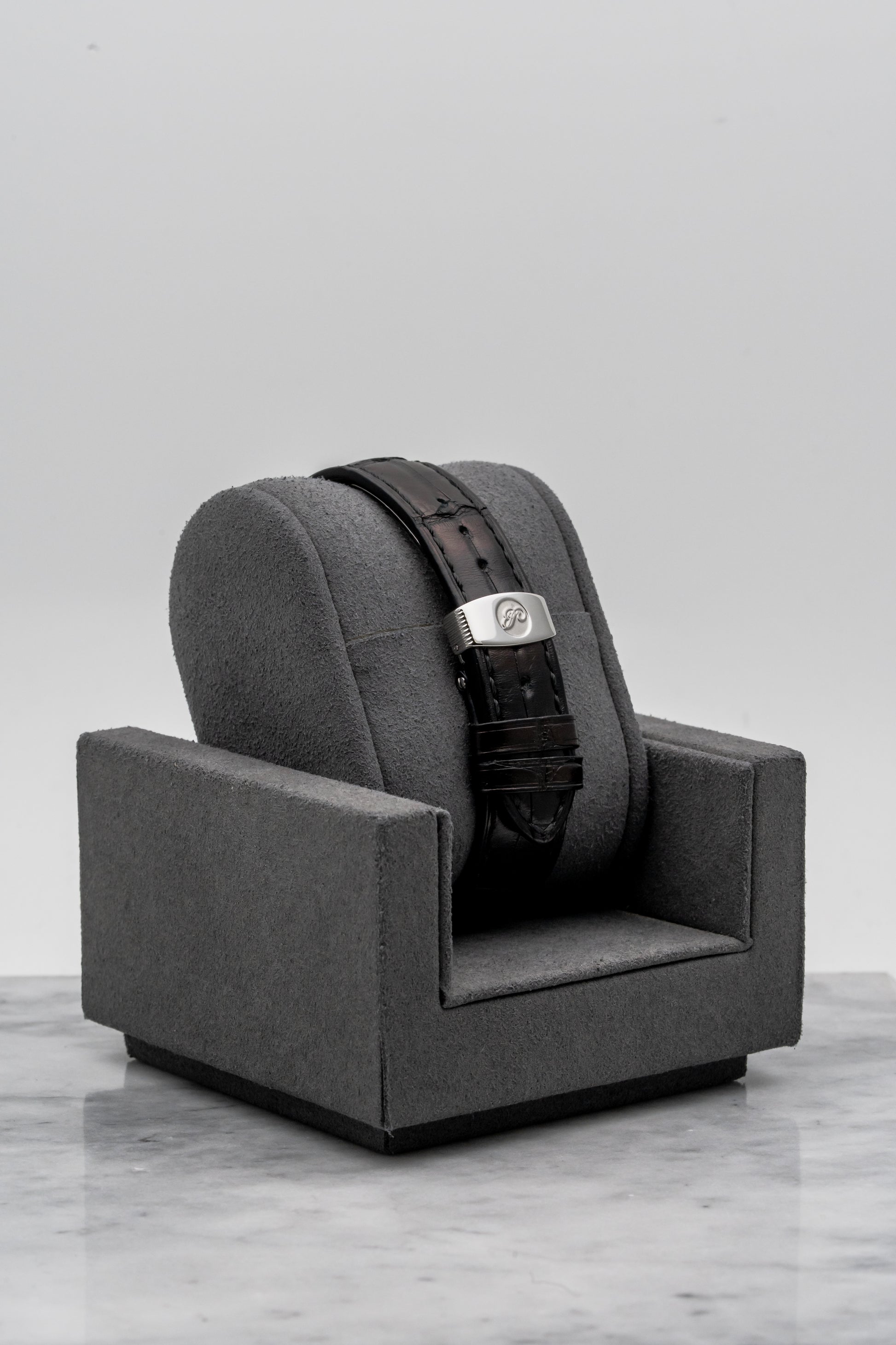 The 3755PR is significant not only for its mechanical ambition, but for how clearly it communicates that complexity. The fully skeletonized dial reveals the calibre 558 SQ in its entirety, allowing the architecture of the movement to serve as the design itself. The tourbillon at 6 o’clock anchors the composition, while the perpetual calendar indications for day, month, leap year, and the retrograde date are arranged with remarkable clarity. In platinum, the watch carries a natural gravity that suits its technical stature without tipping into excess.
