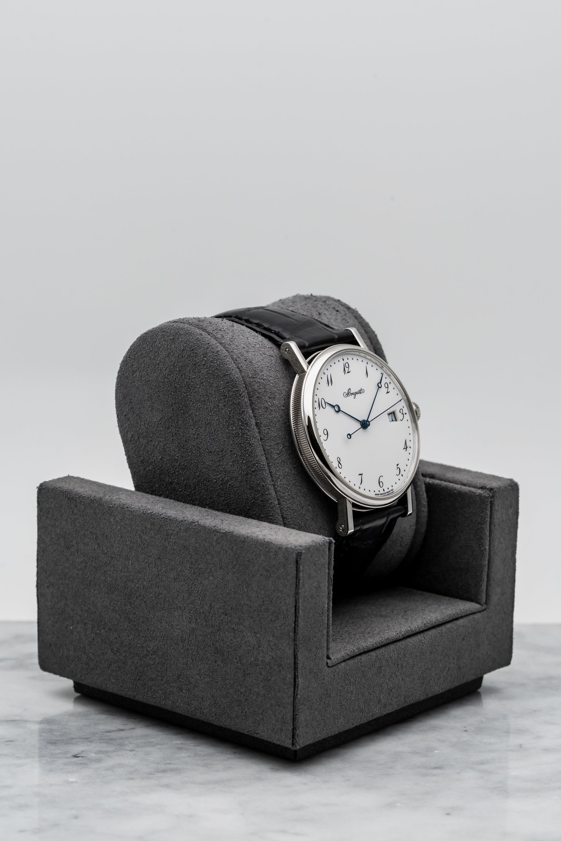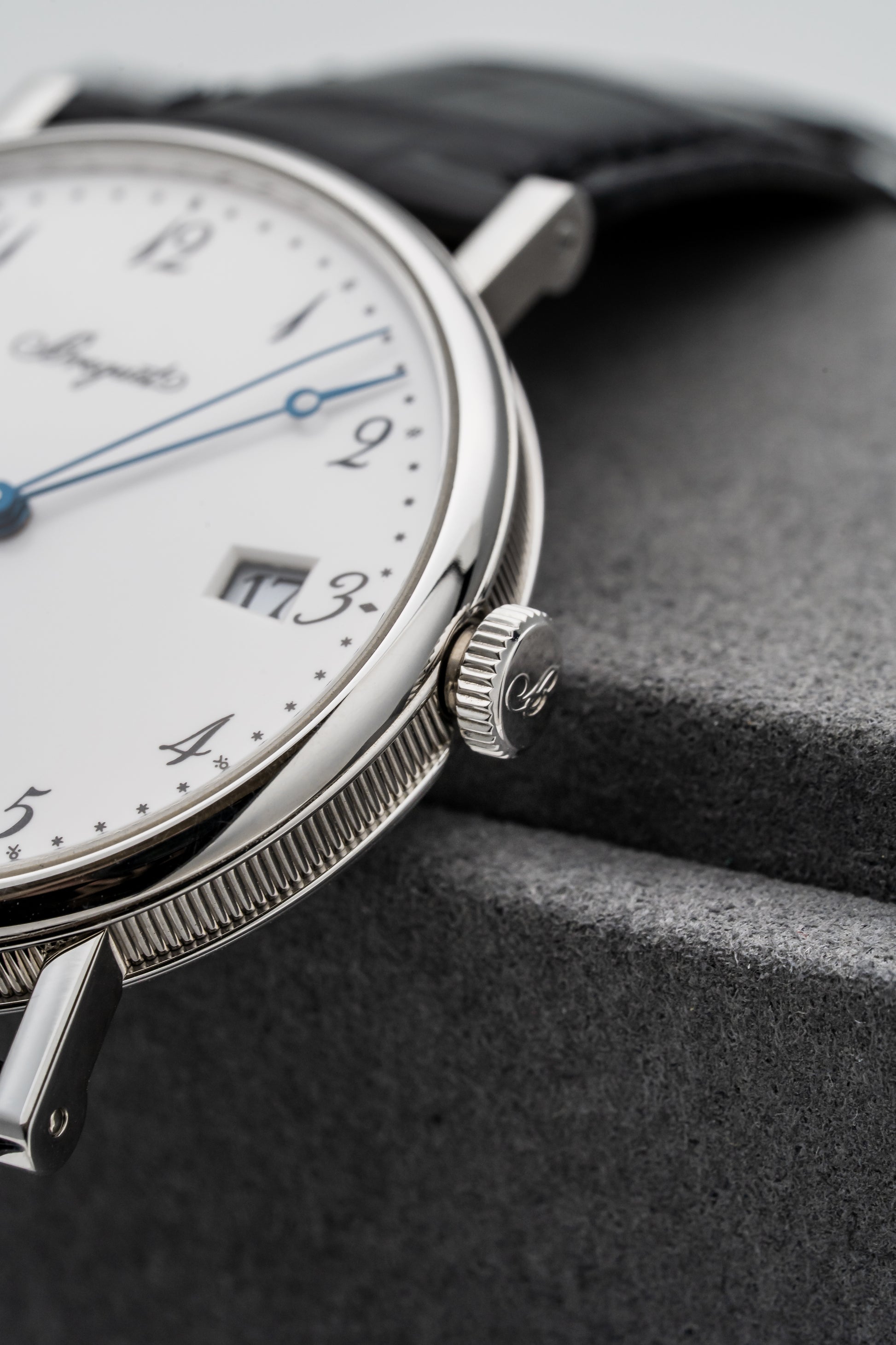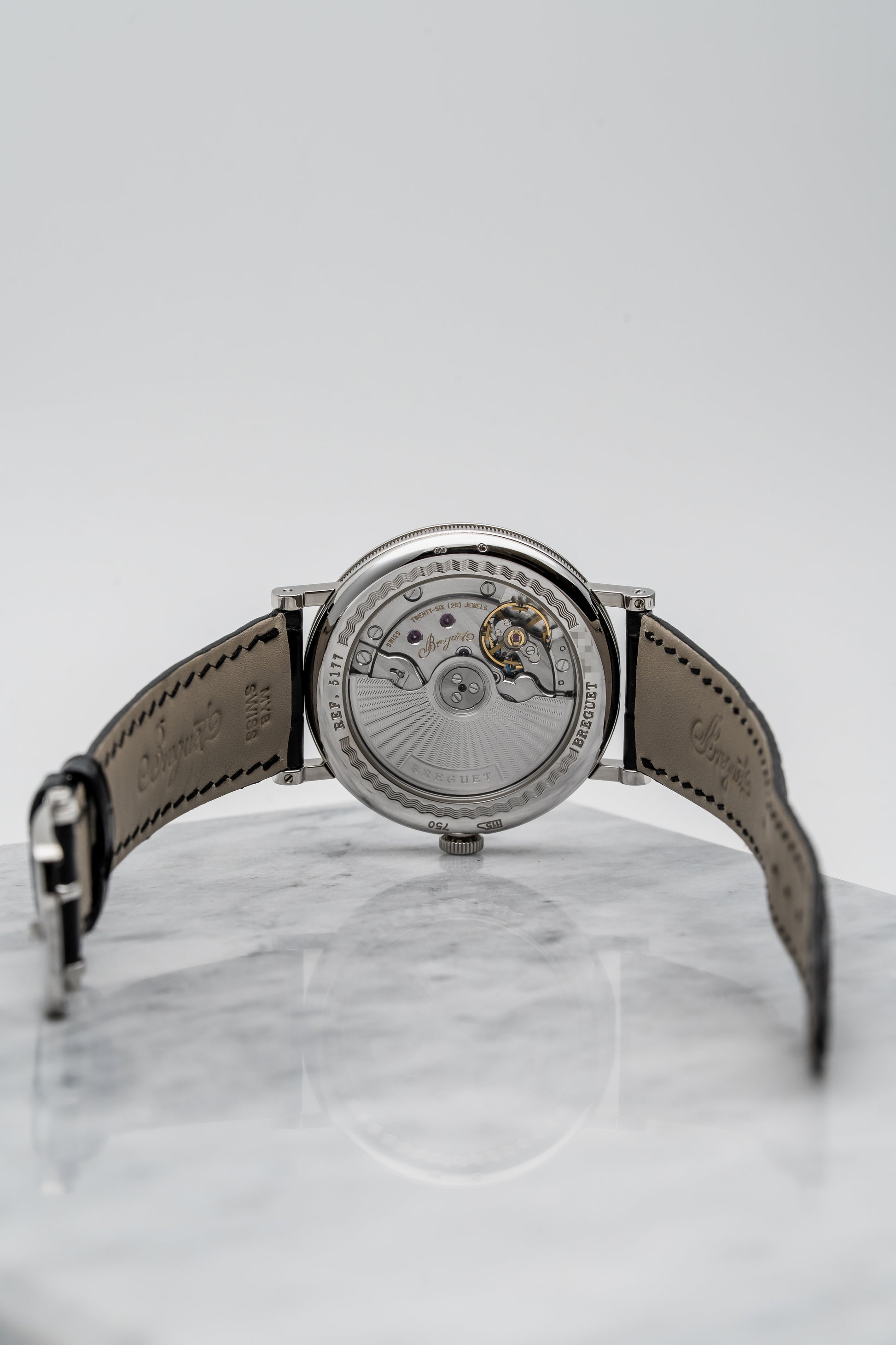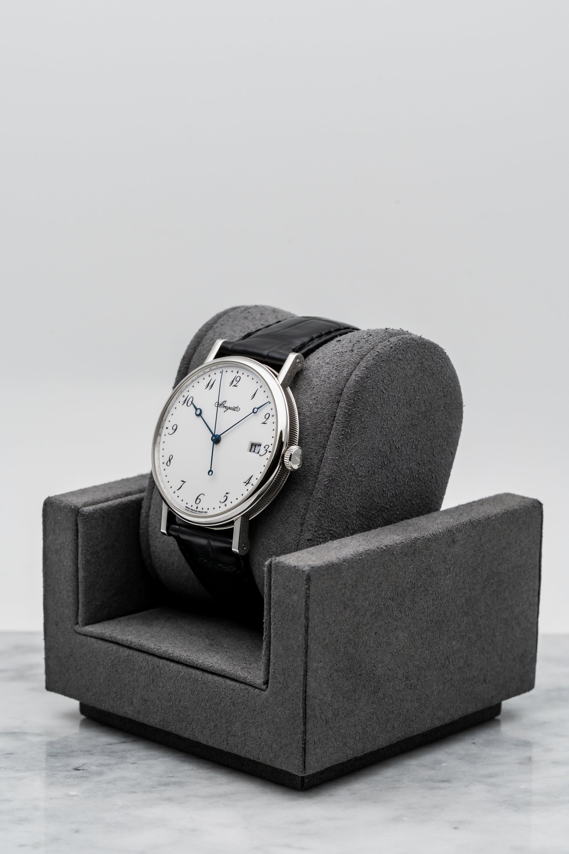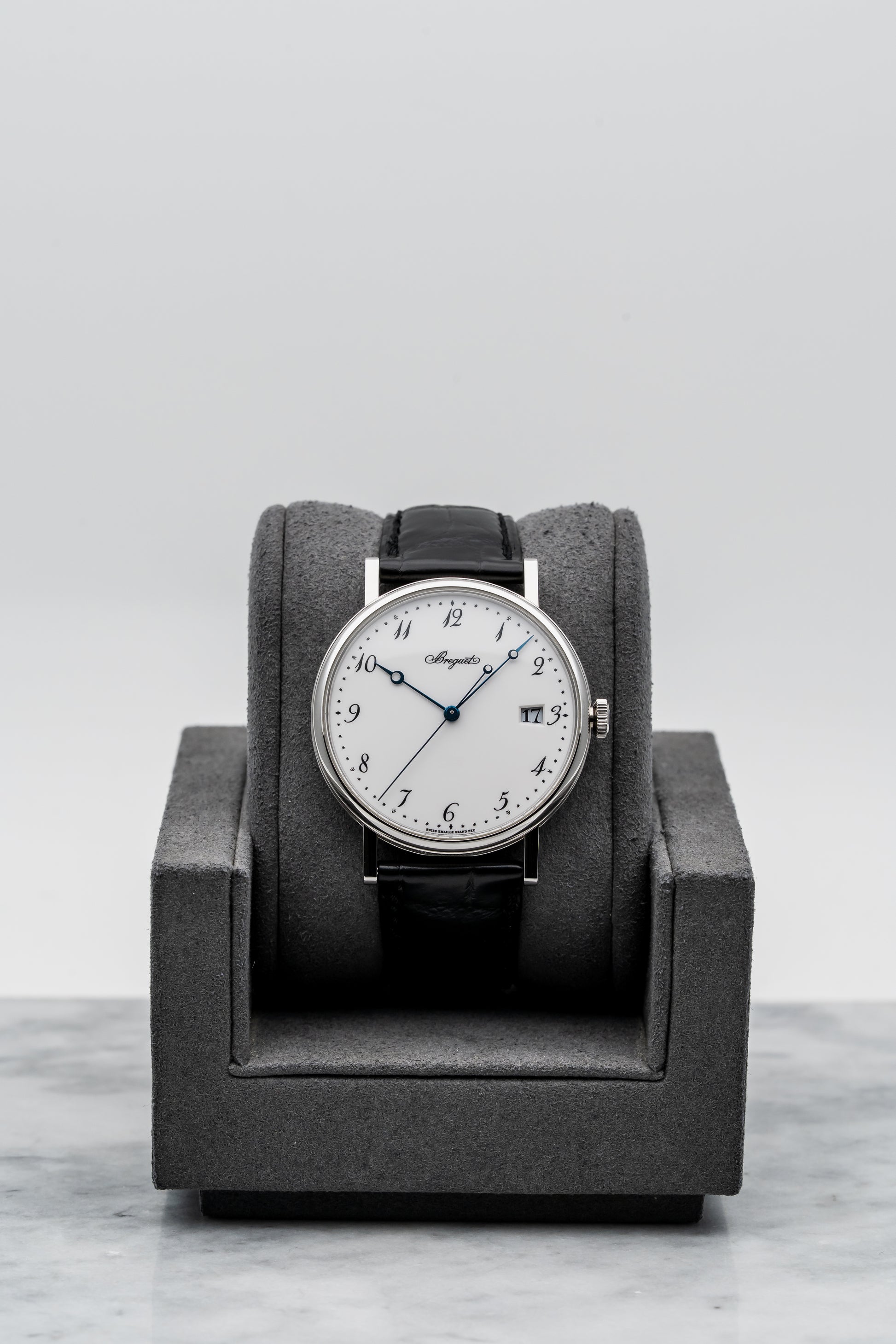 - Dial: Grand Feu White Enamel with Breguet Numerals & Blued Hands
