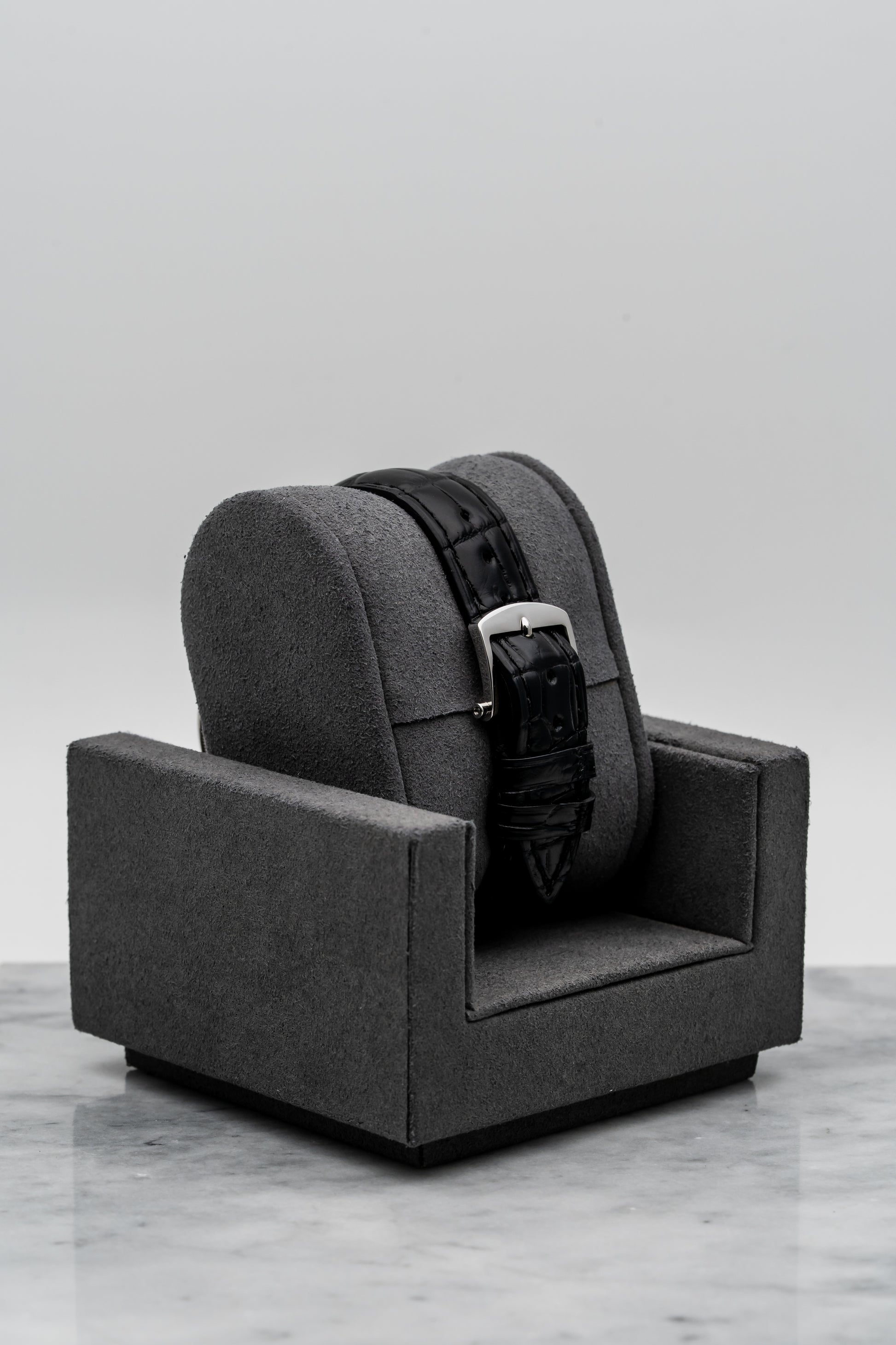 - Strap: Black Alligator Leather with White Gold Tang Buckle