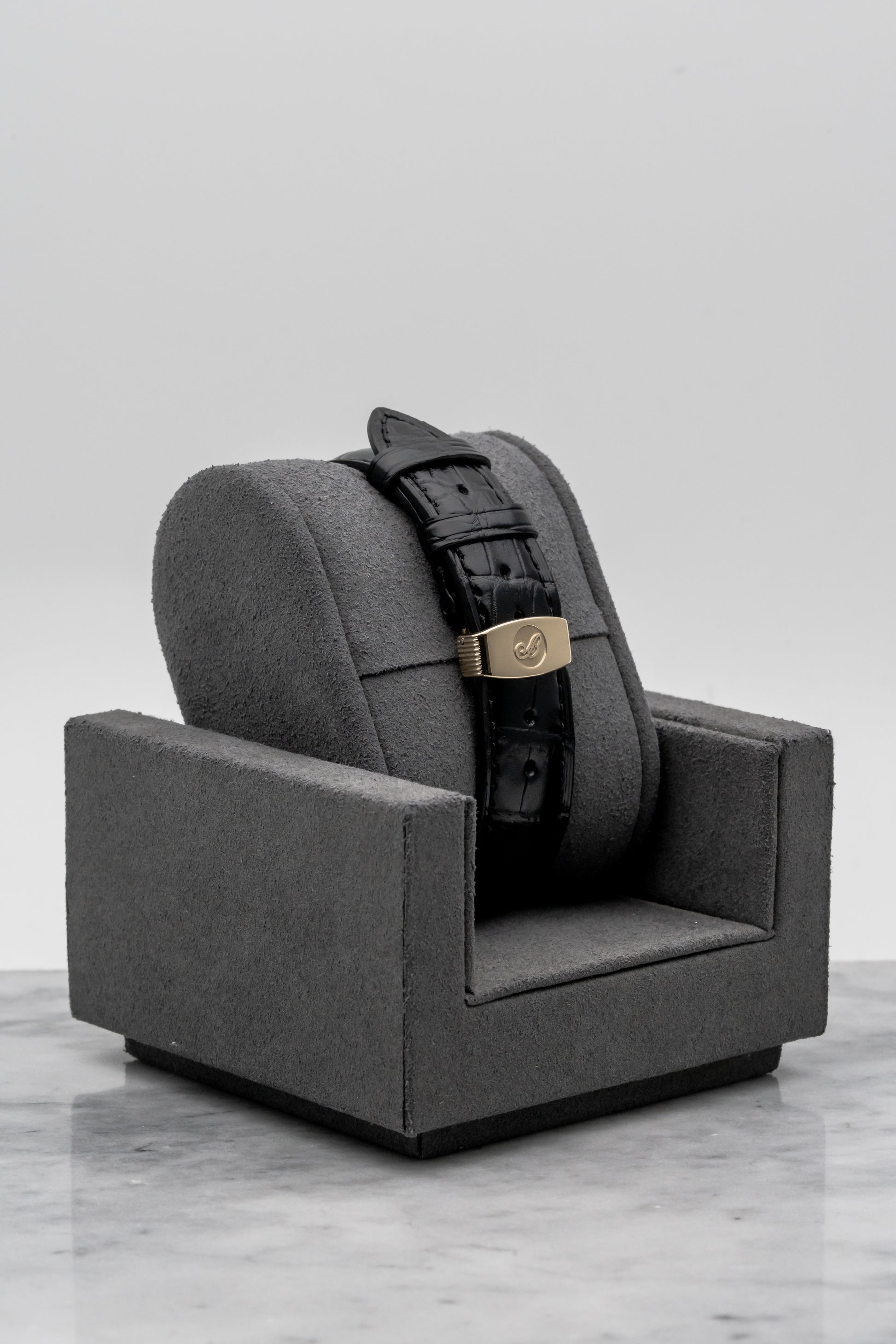 - Strap: Black Leather Strap with 18K Yellow Gold Folding Clasp