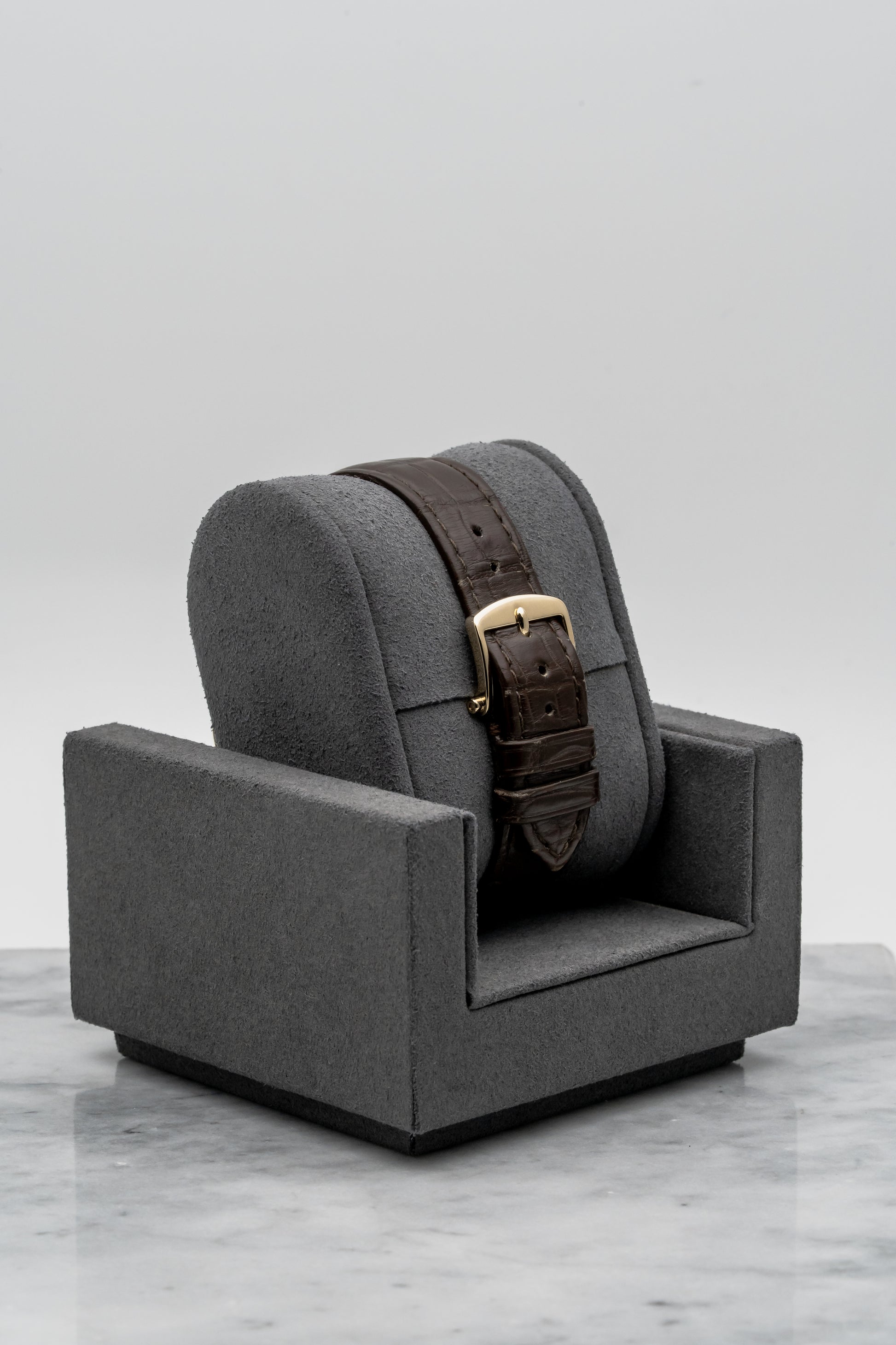 Strap: Brown Leather Strap with 18K Yellow Gold Pin Buckle