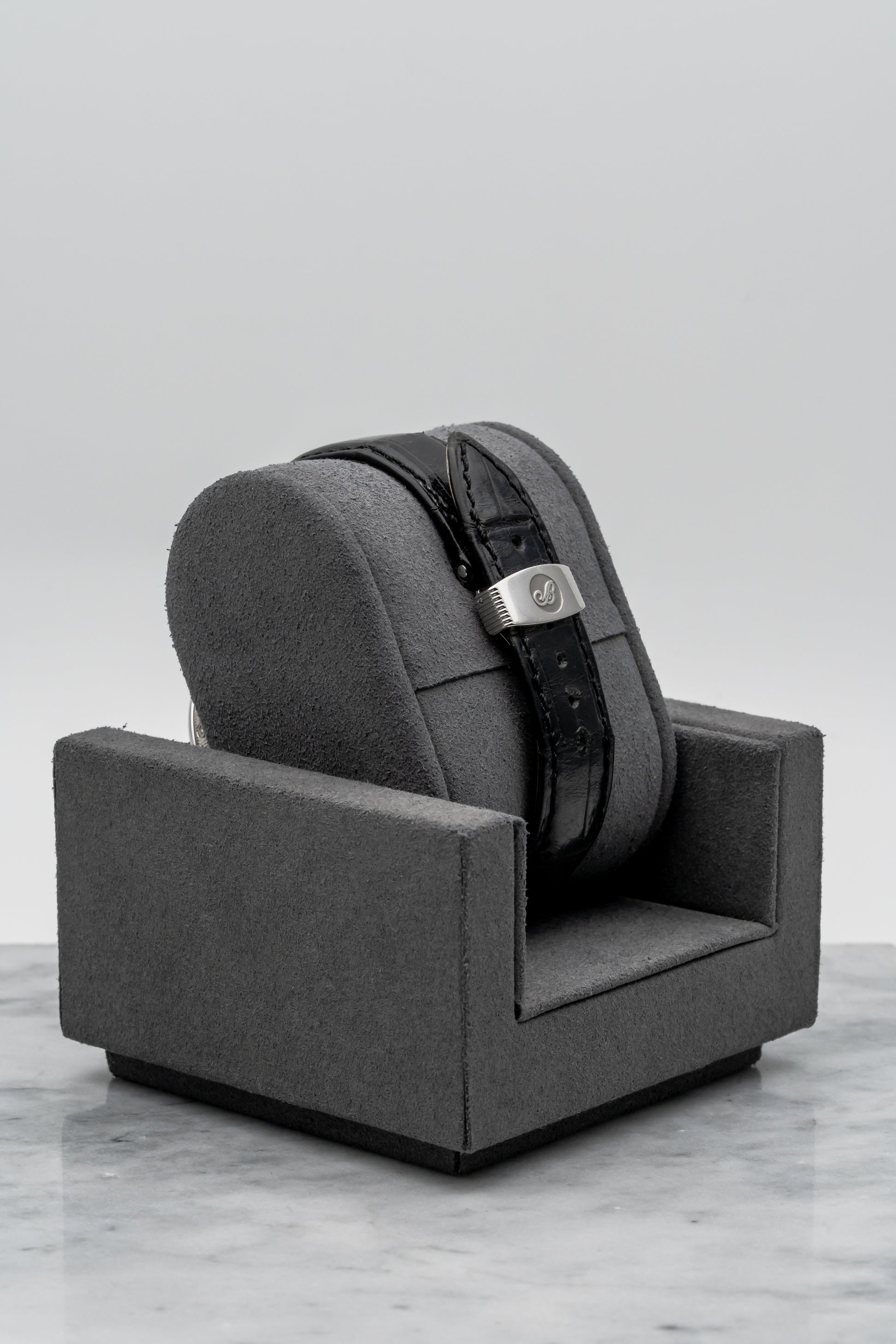 Strap: Black Leather Strap with Platinum Folding Clasp