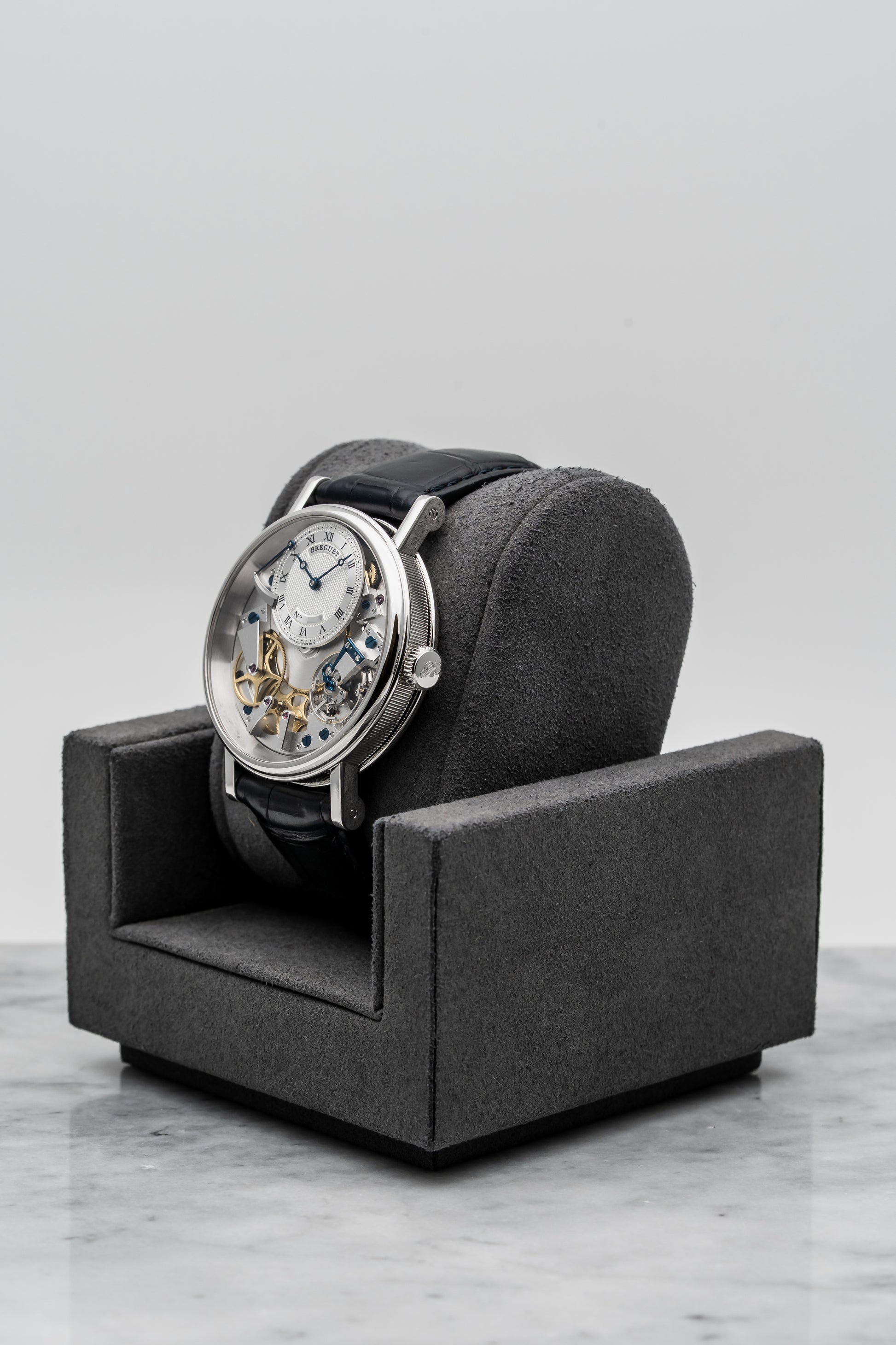 - Dial: Off-Centered Silver Guilloché with Roman Numerals, Exposed Movement Architecture