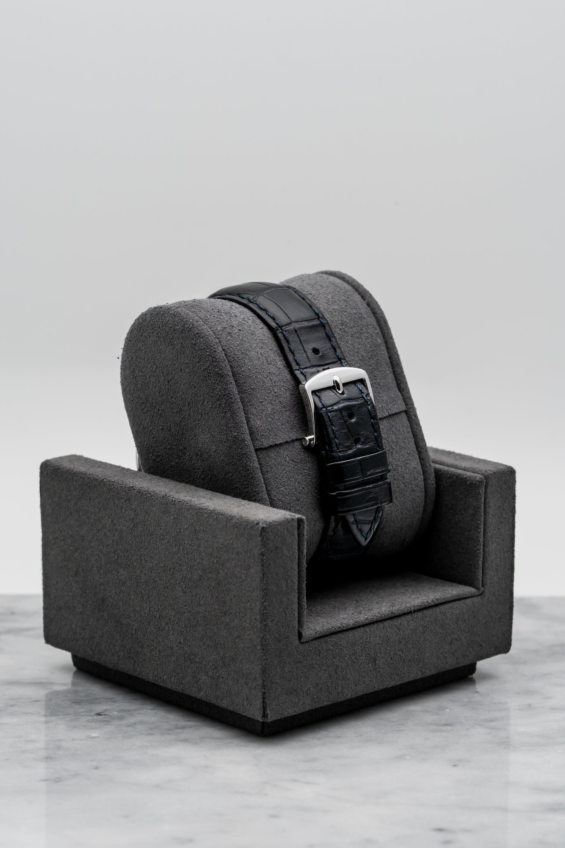 - Strap: Black Alligator Leather with 18K White Gold Pin Buckle