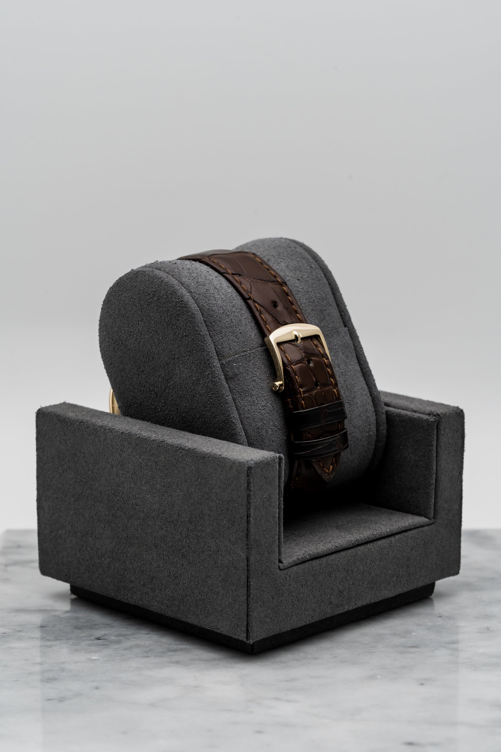 - Strap: Brown Leather Strap with 18K Yellow Gold Folding Clasp