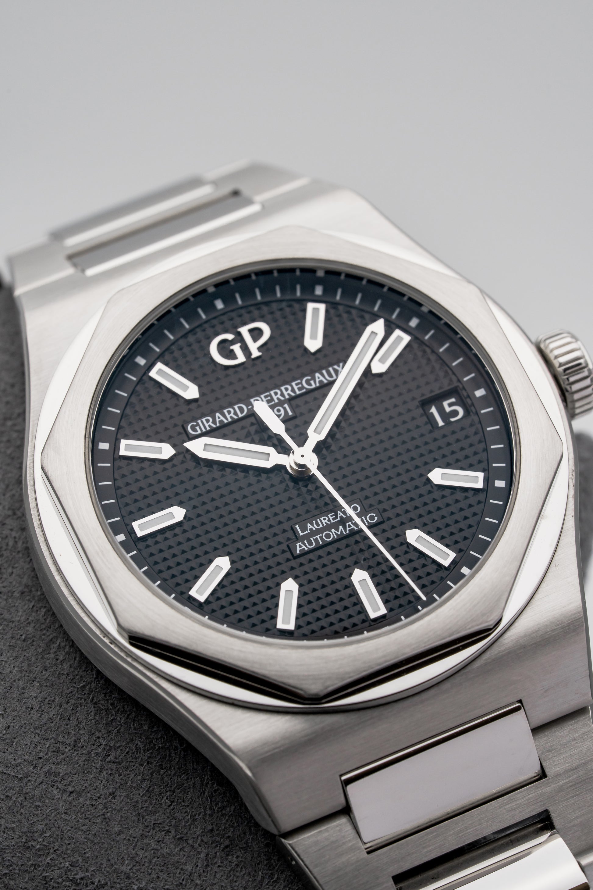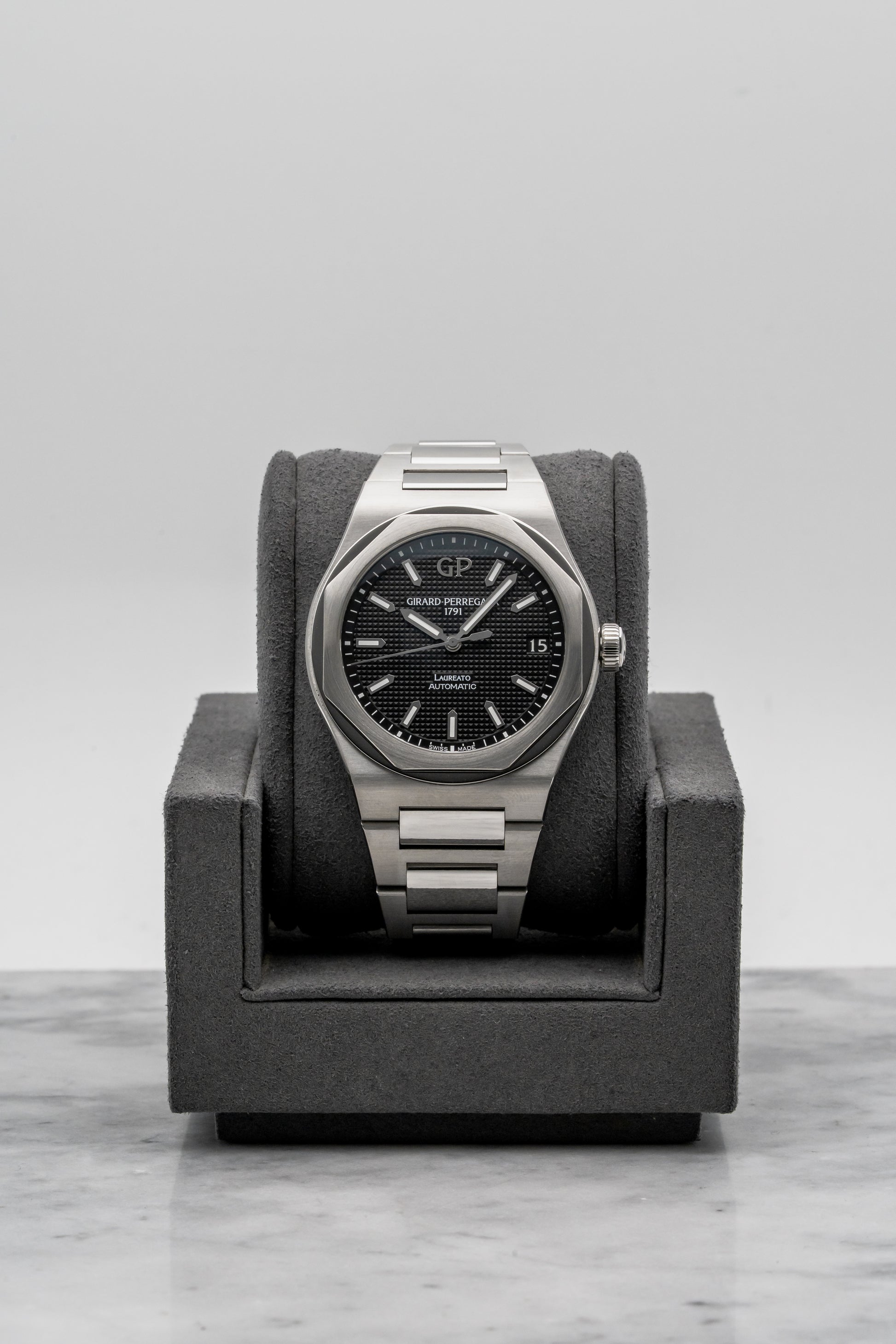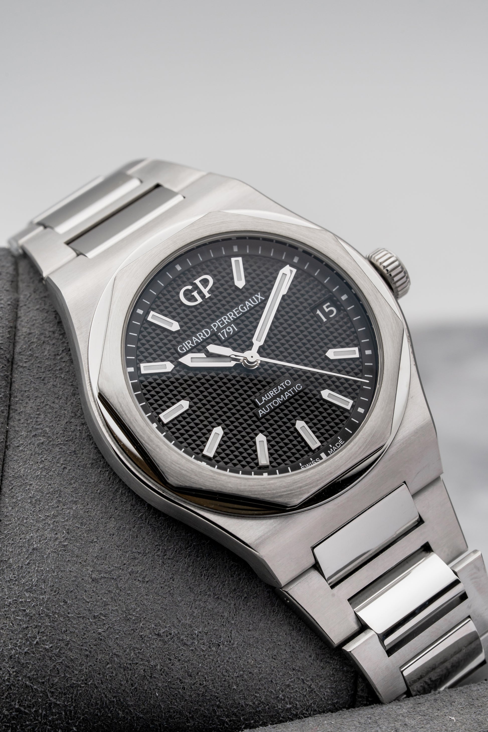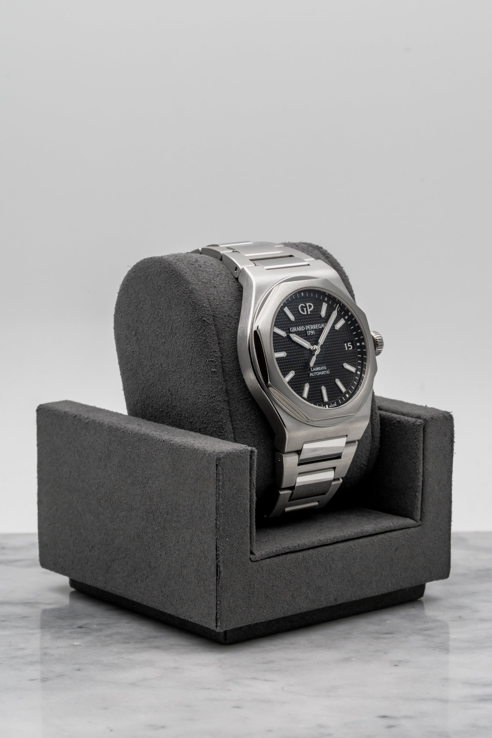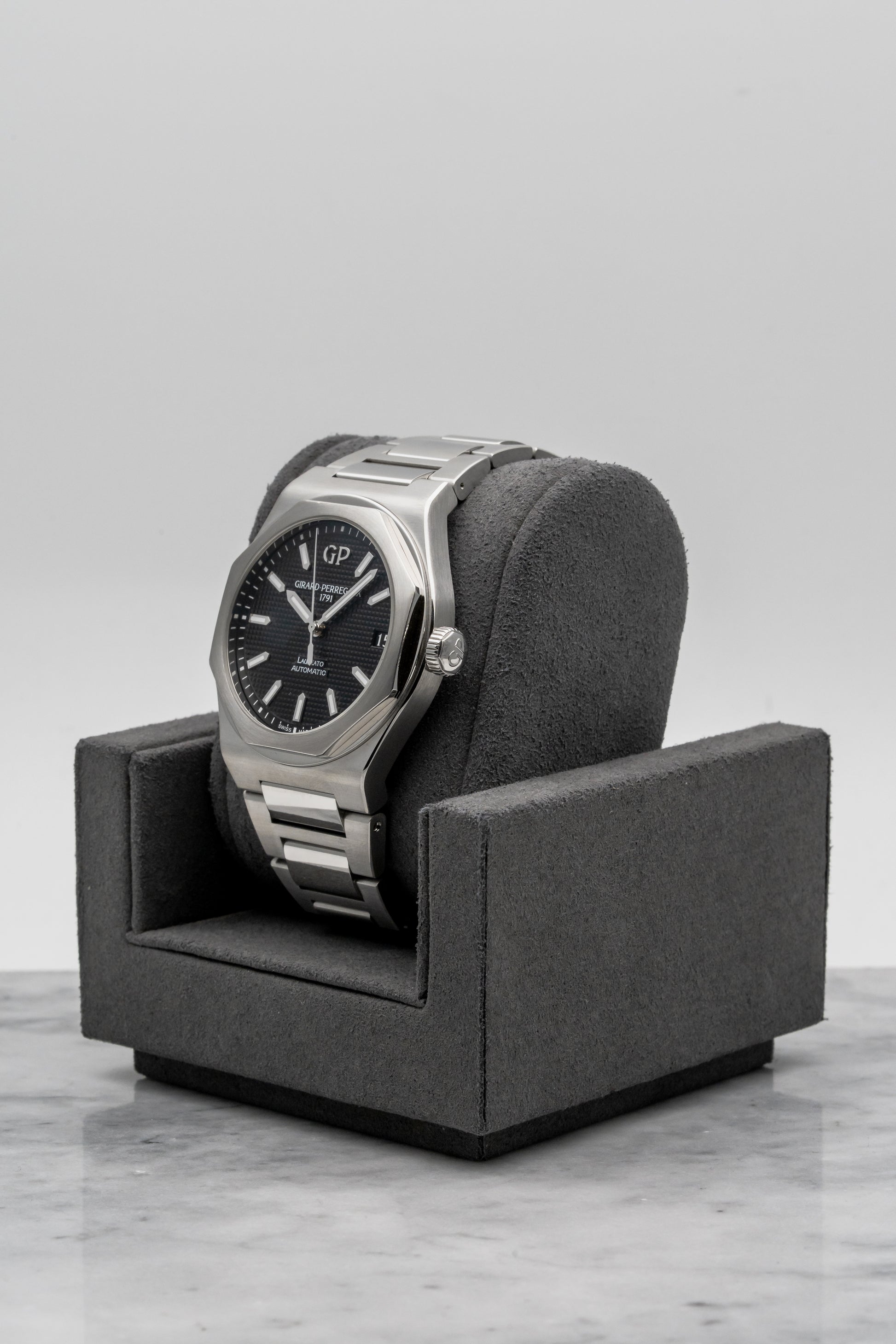 The Laureato is Girard-Perregaux’s original integrated-bracelet sports watch, first introduced in the 1970s and developed quietly alongside better-known peers from the era. Long before the category became crowded, the Laureato established its own identity through sharp geometry, thoughtful proportions, and a clear emphasis on everyday wearability. The modern 42mm Laureato builds directly on that foundation, preserving the design language while refining execution for contemporary collectors.