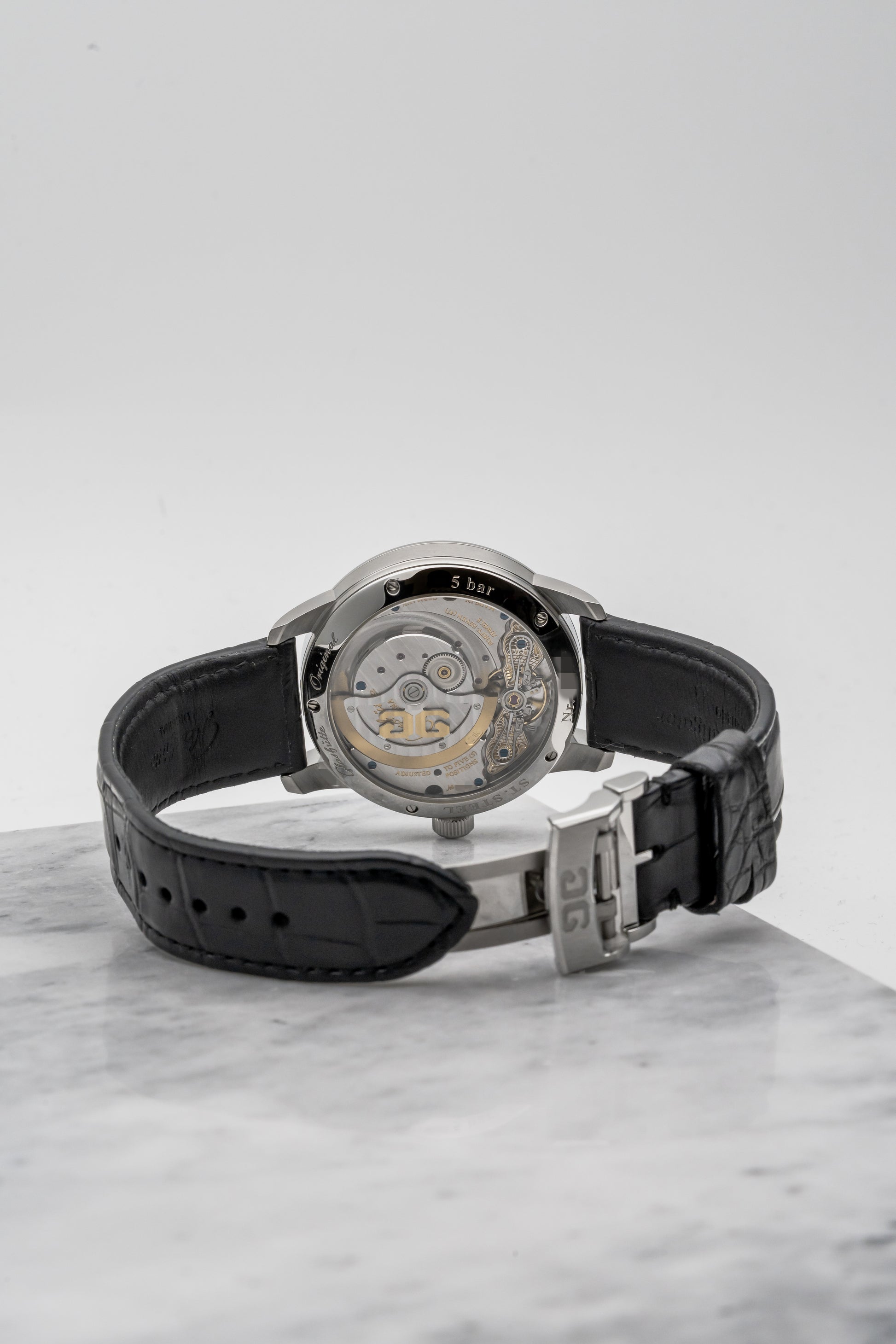 Dial: Silver Opaline Dial with Off-center Time Display, Panorama Date and Moonphase