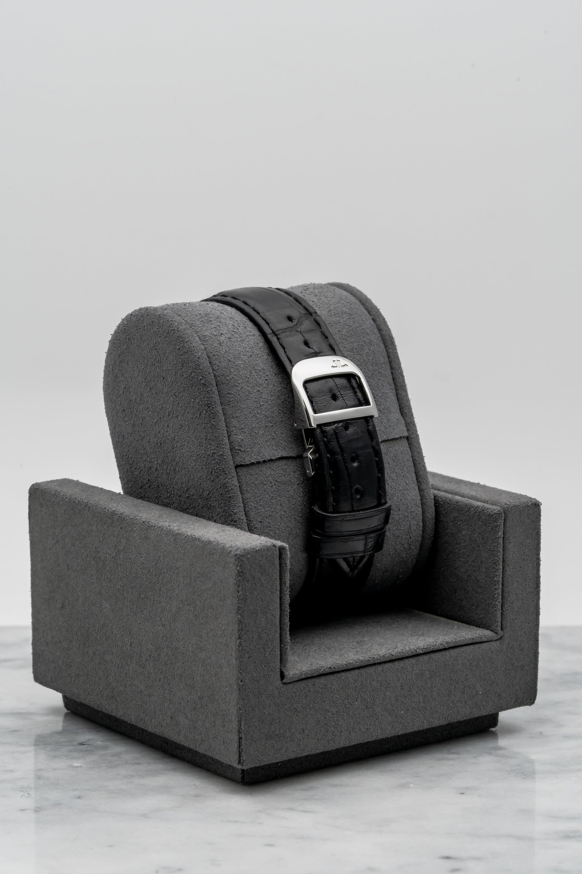 - Strap: Black Leather with JLC Steel Deployant Clasp