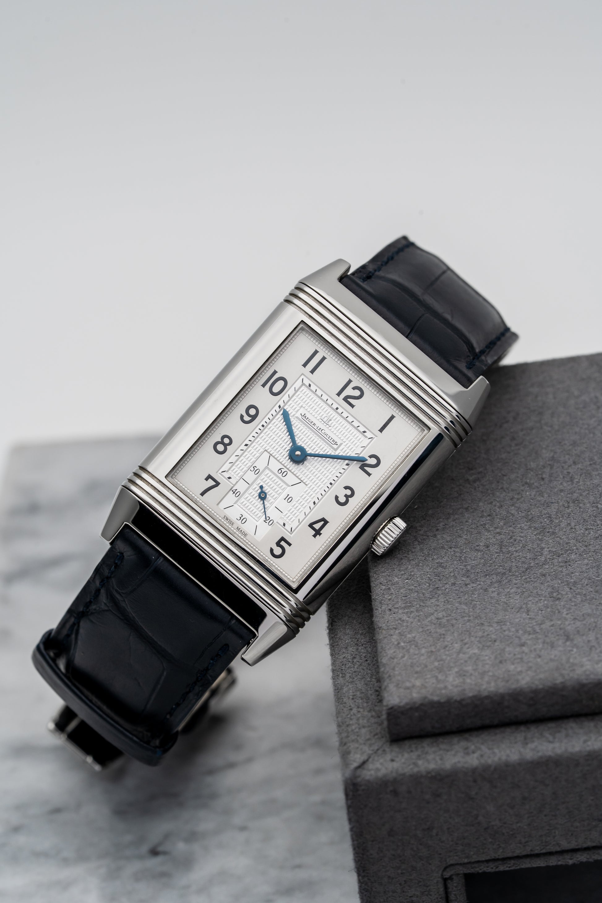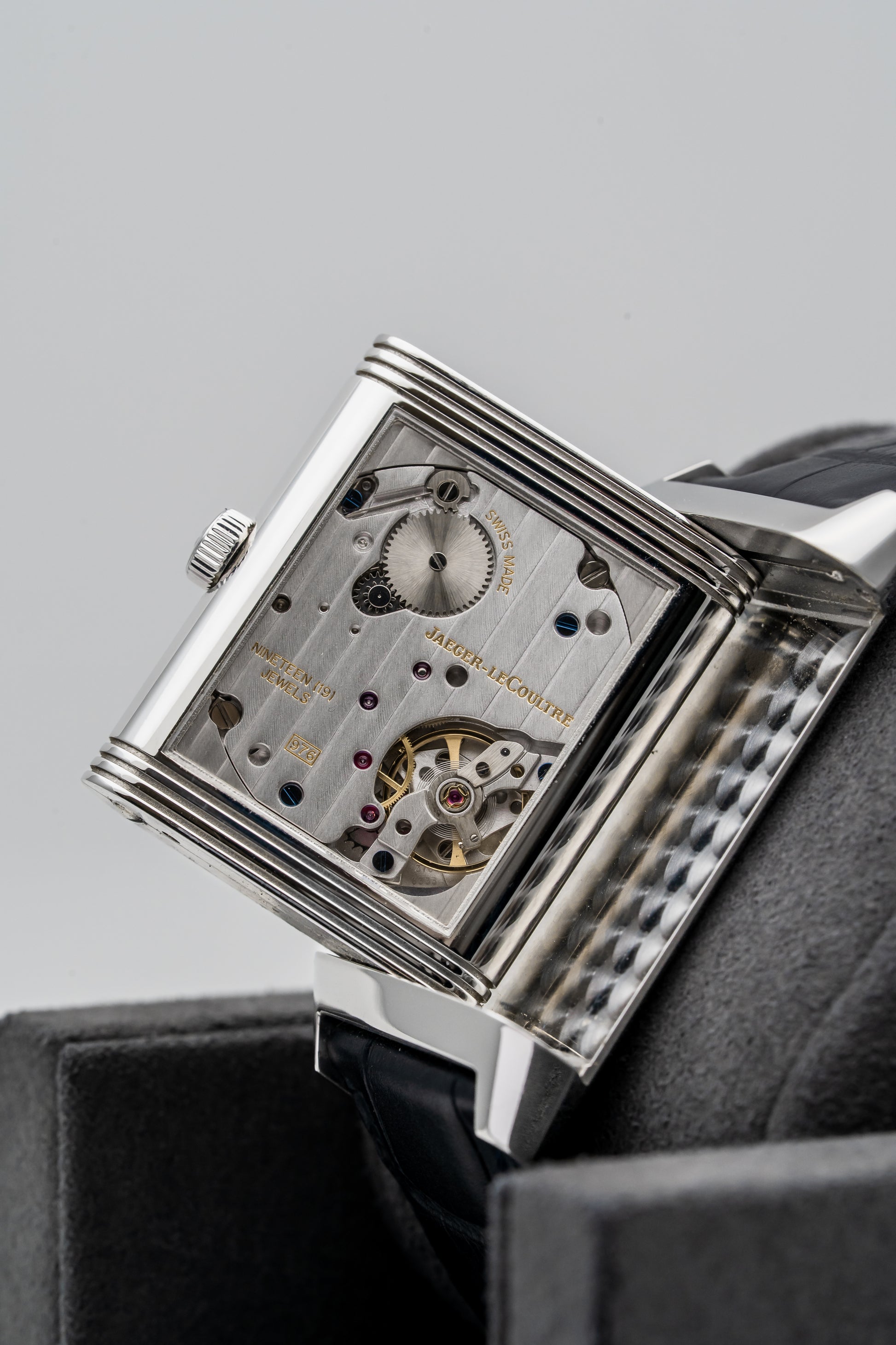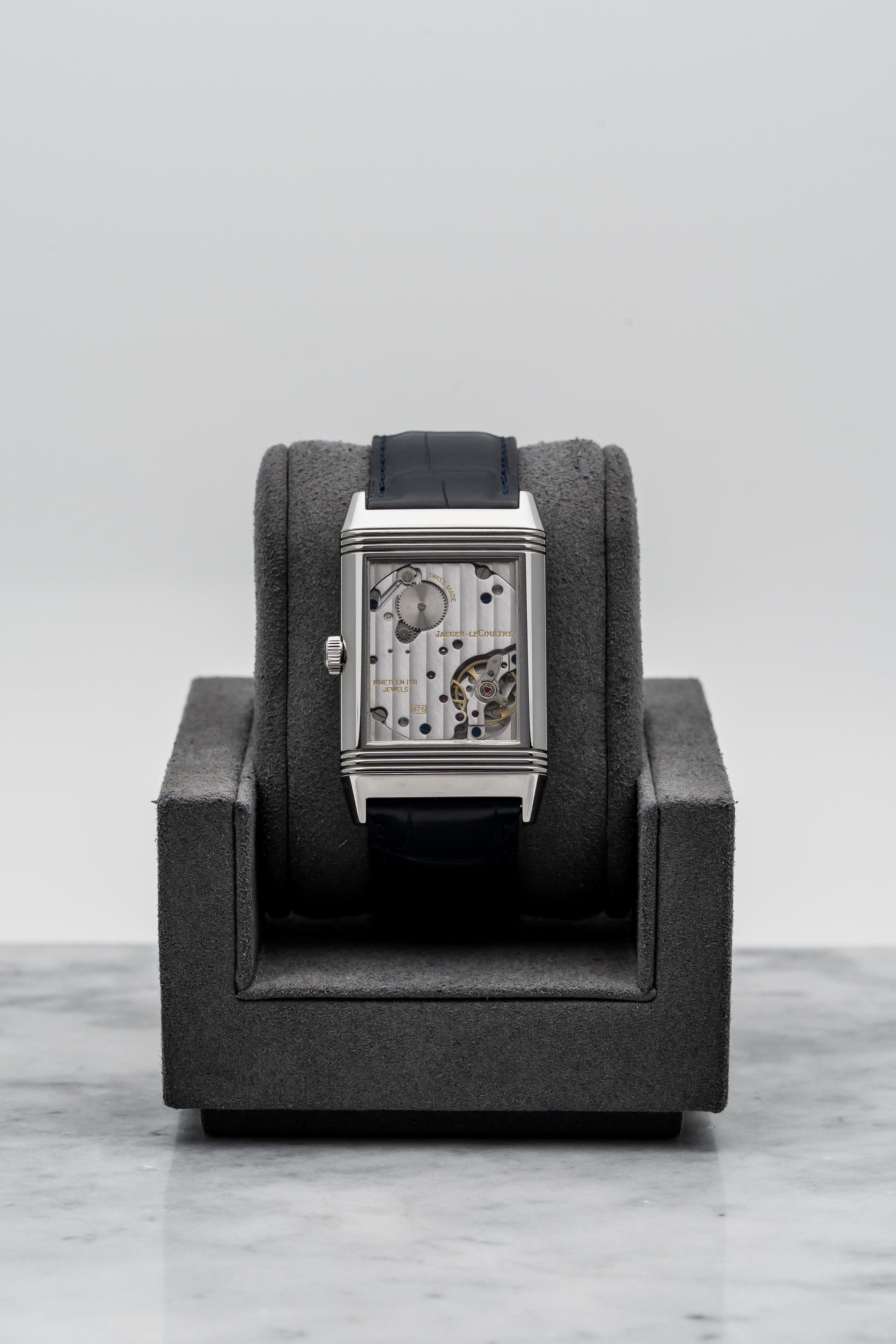 - Strap: Black Alligator Leather with Stainless Steel JLC Folding Clasp