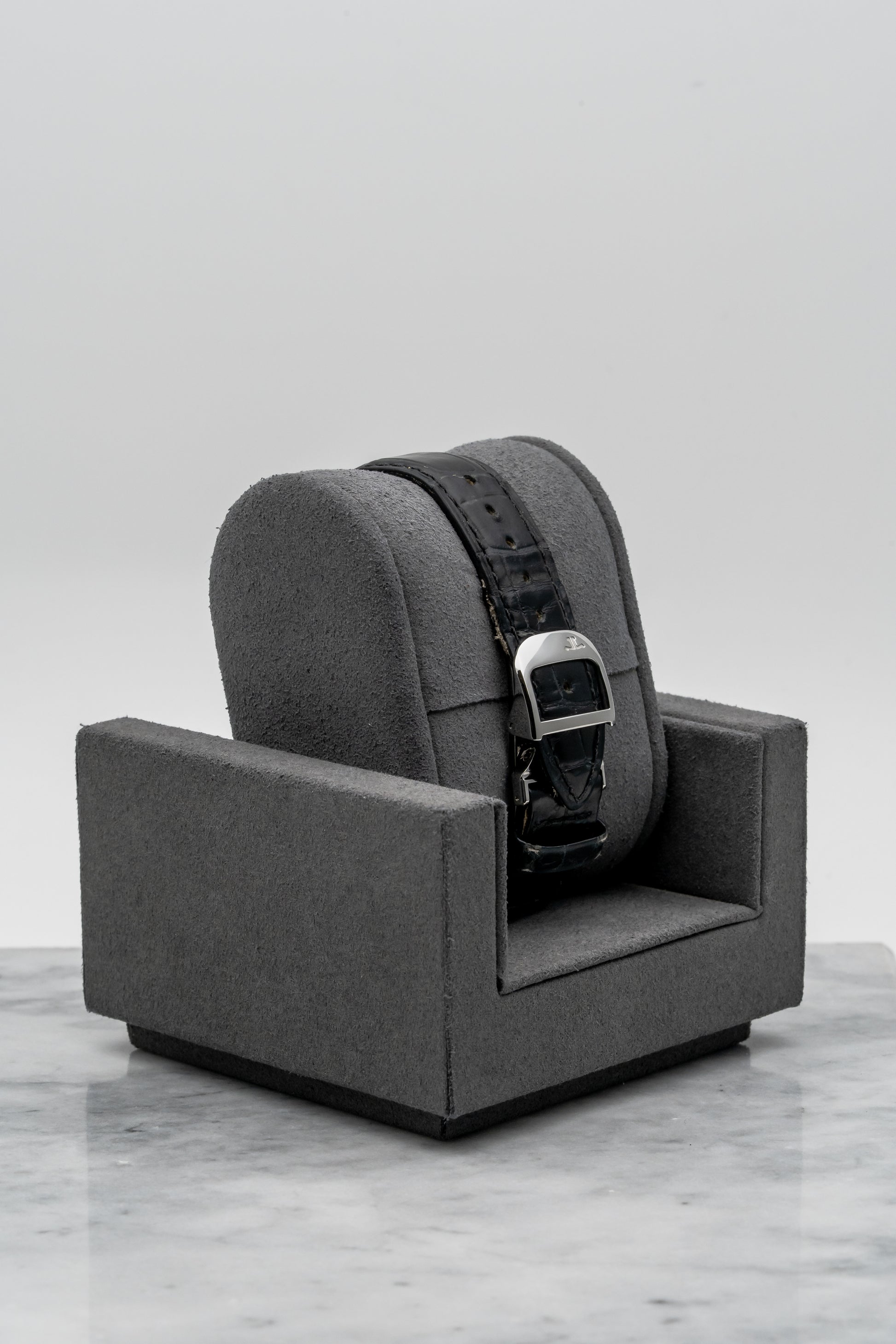 - Dial: Silver Guilloché Dial with Arabic Numerals (Front) | Black Sunburst Dial with Diamond-Set Case Accents (Reverse)
