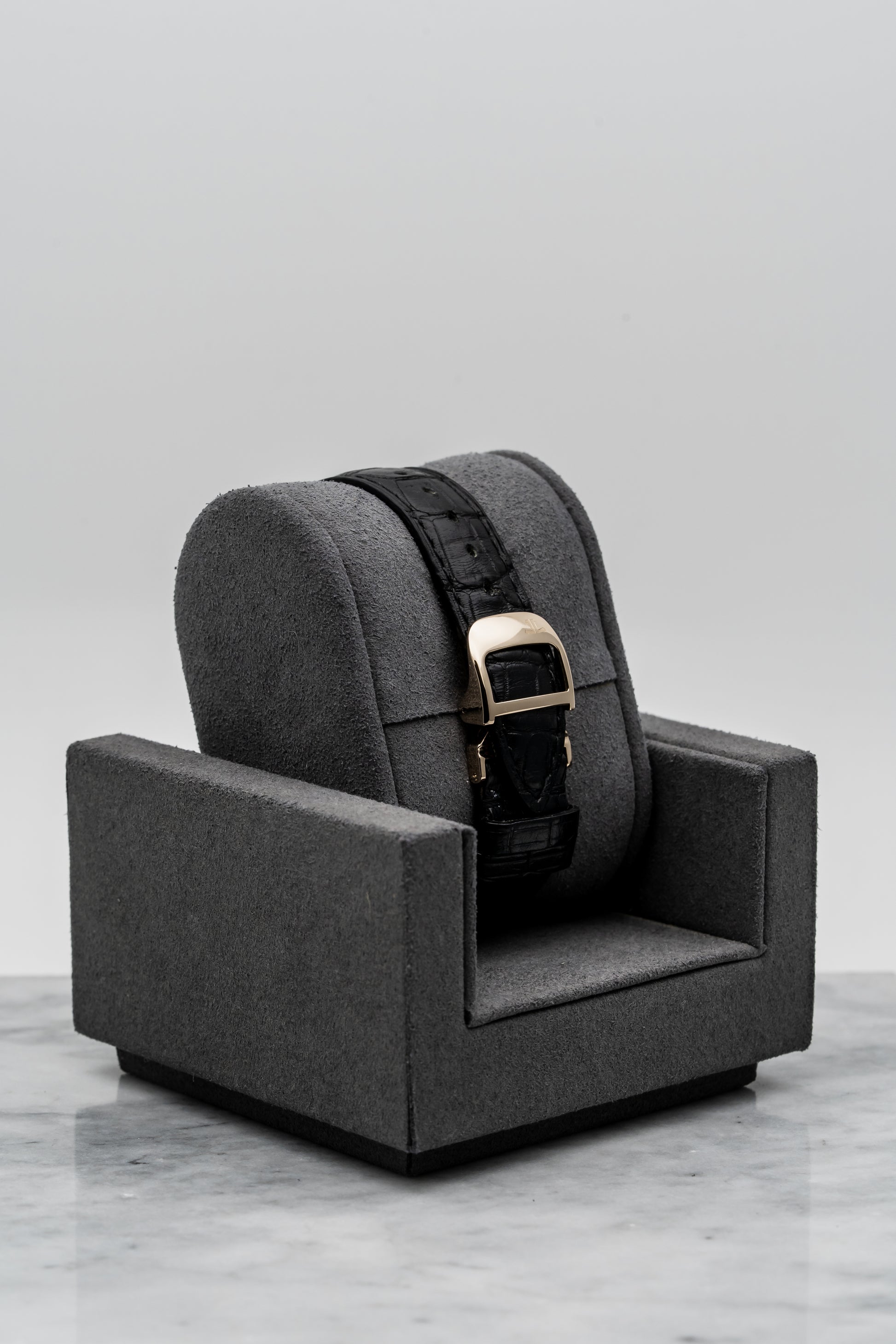 - Strap: Black Alligator Leather with 18K Rose Gold Folding Clasp