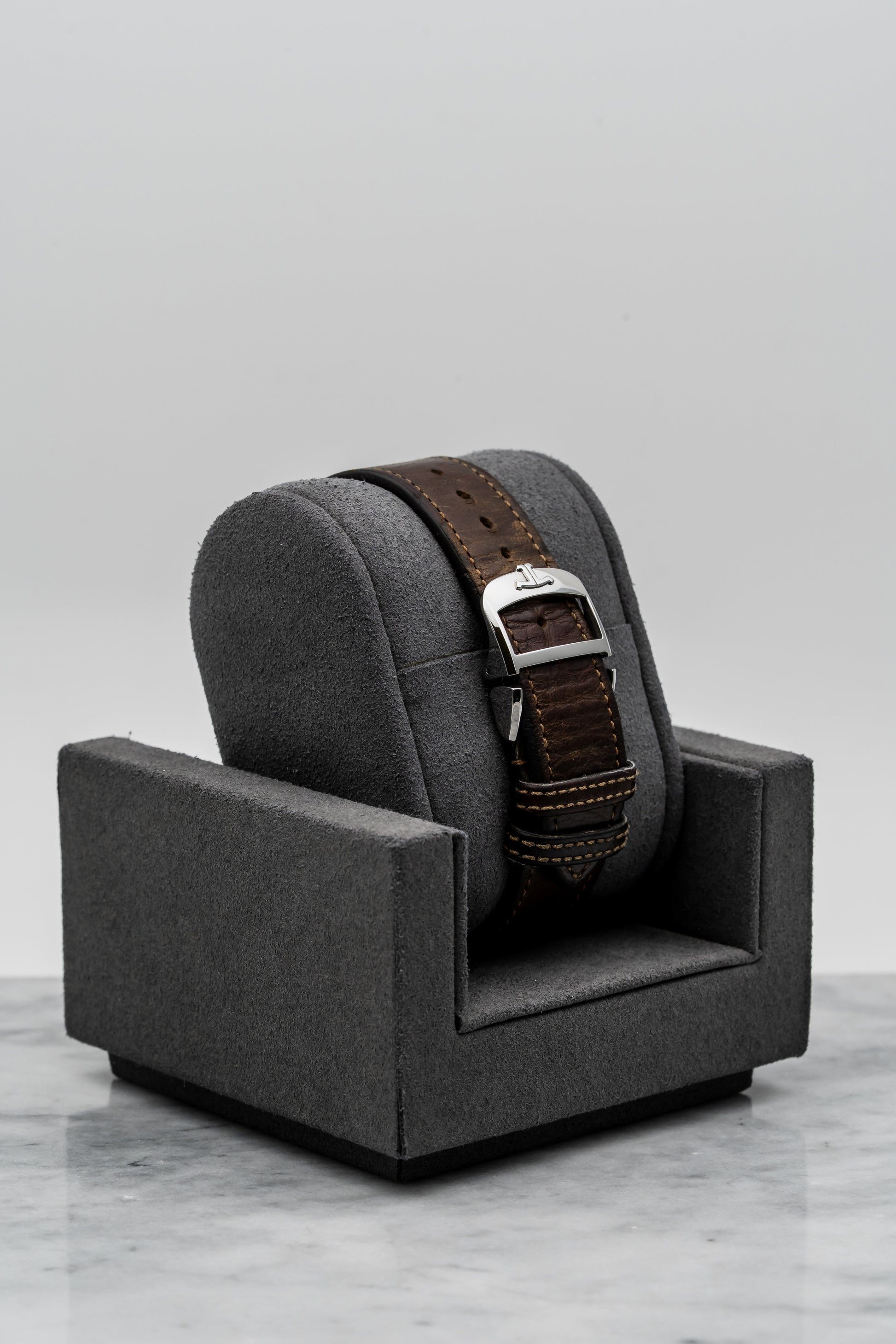 - Strap: Brown Leather with Stainless Steel Folding Clasp