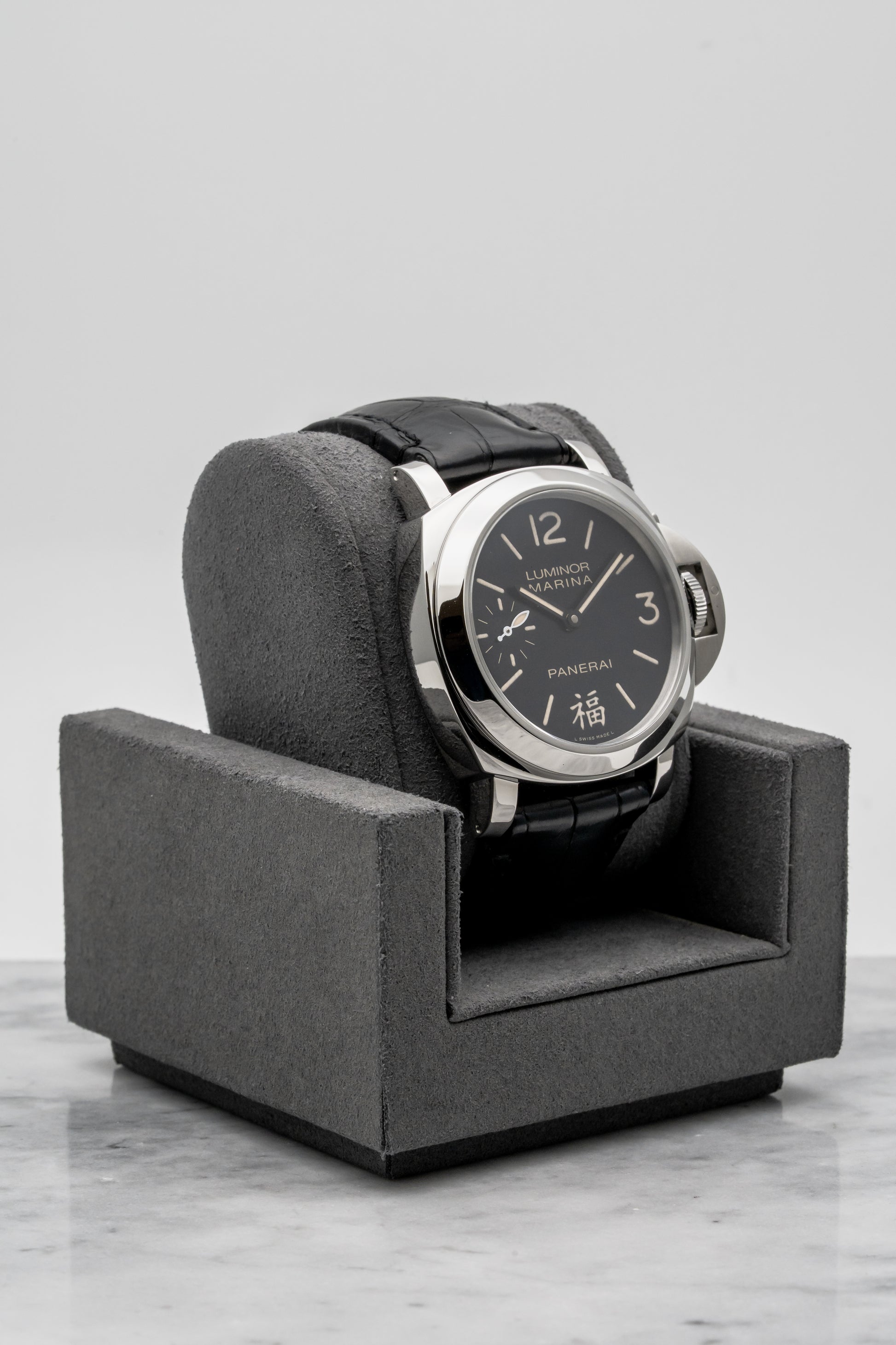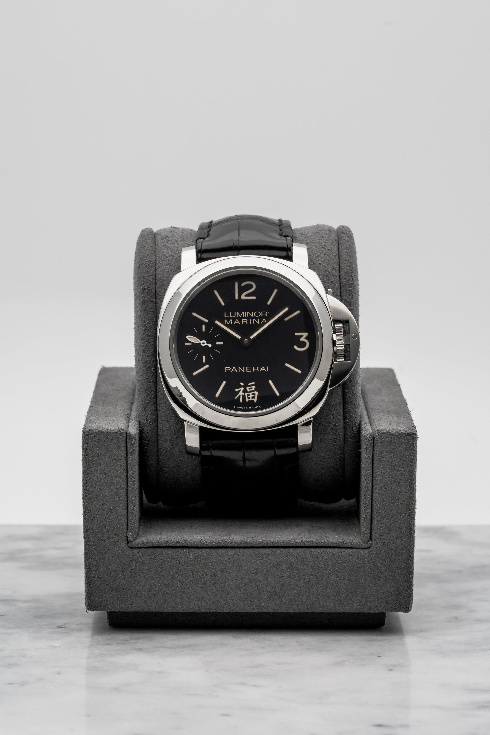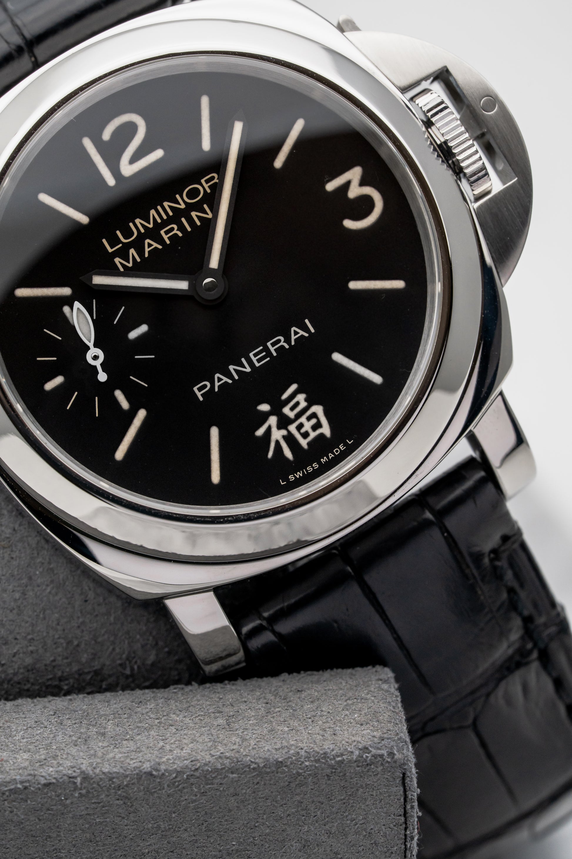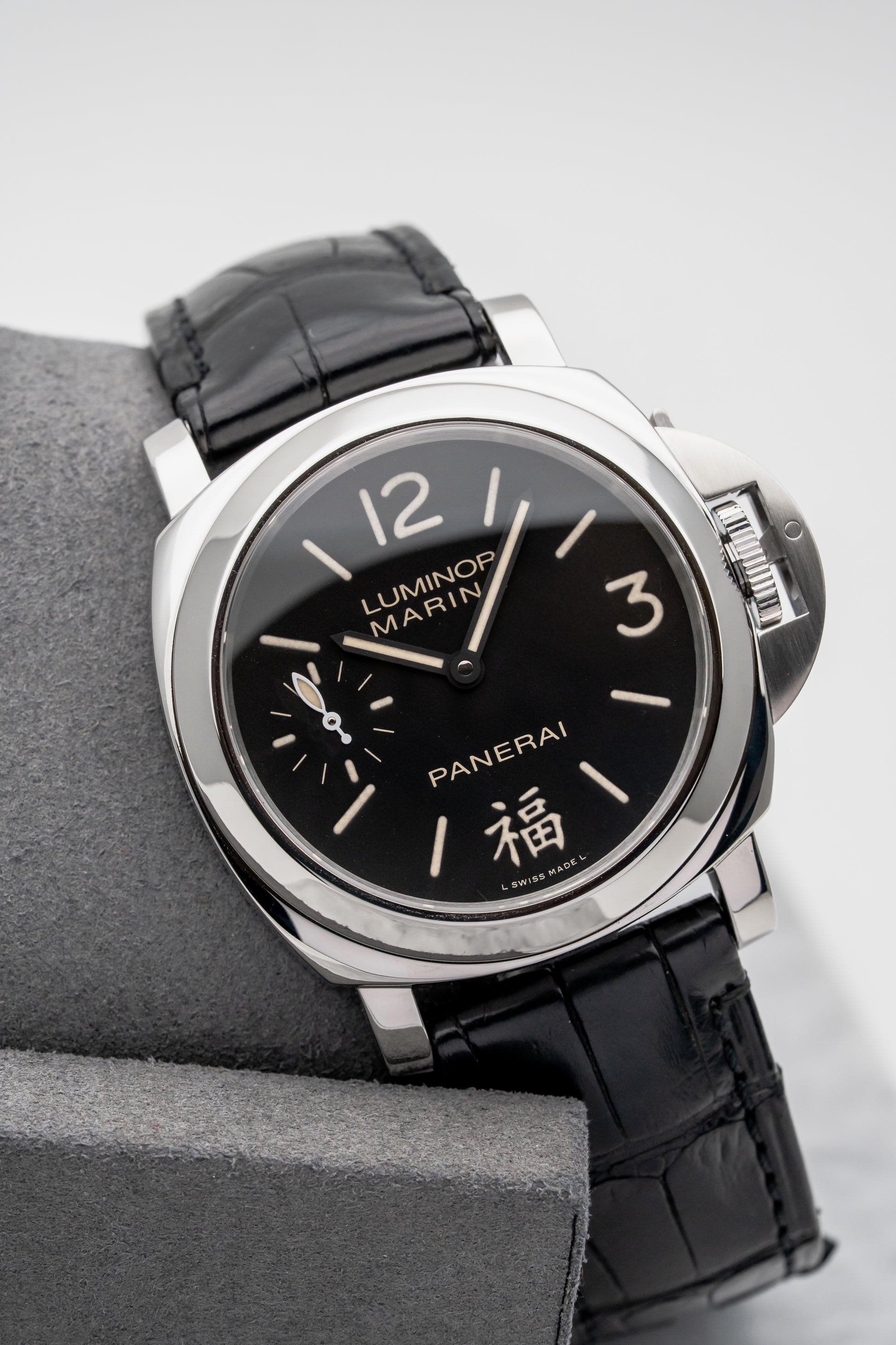 - Dial: Black Sandwich Dial with Arabic Numerals, Small Seconds at 9 o’clock, “福” Character at 6 o’clock