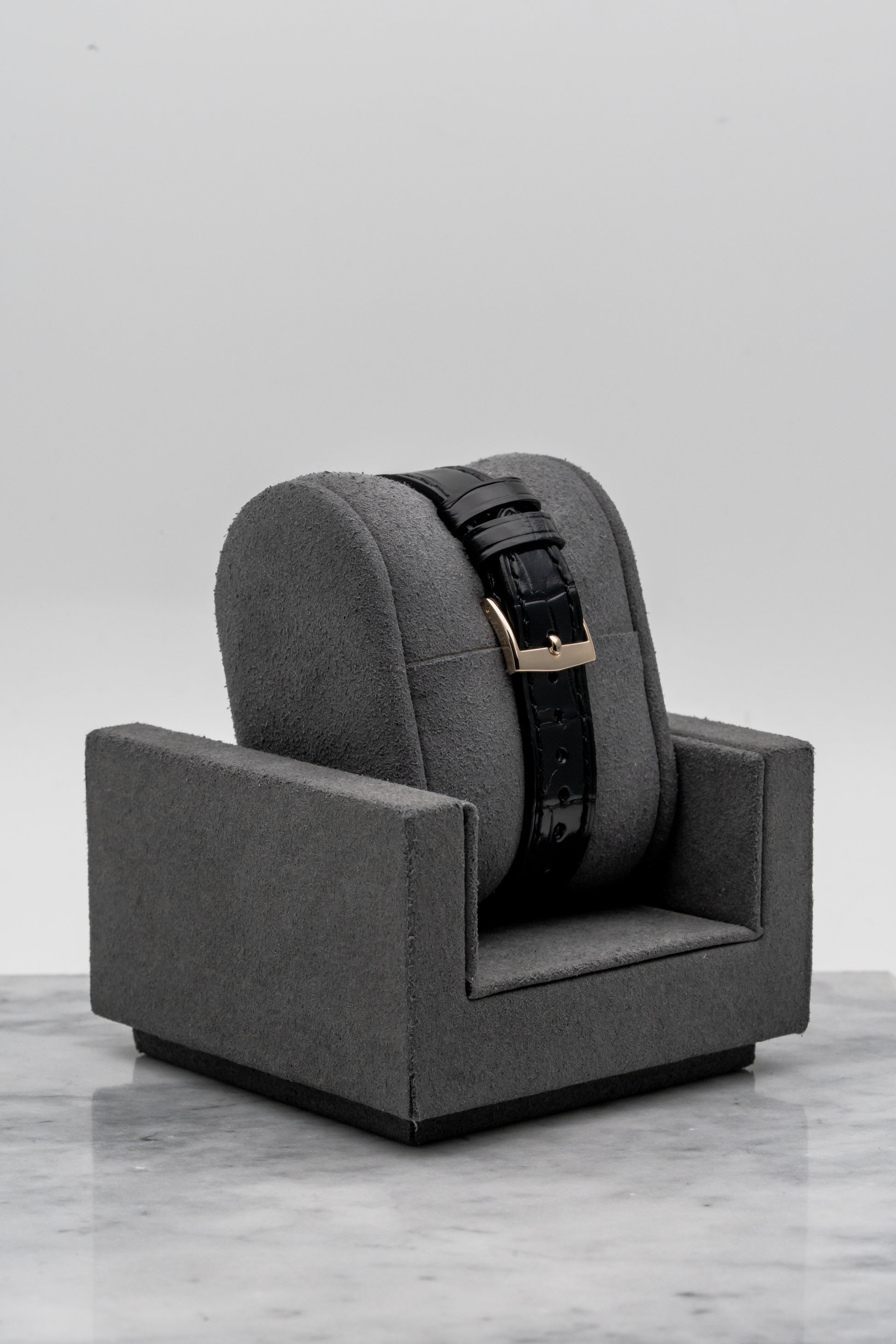 Strap: Black Leather Strap with 18K Rose Gold Pin Buckle