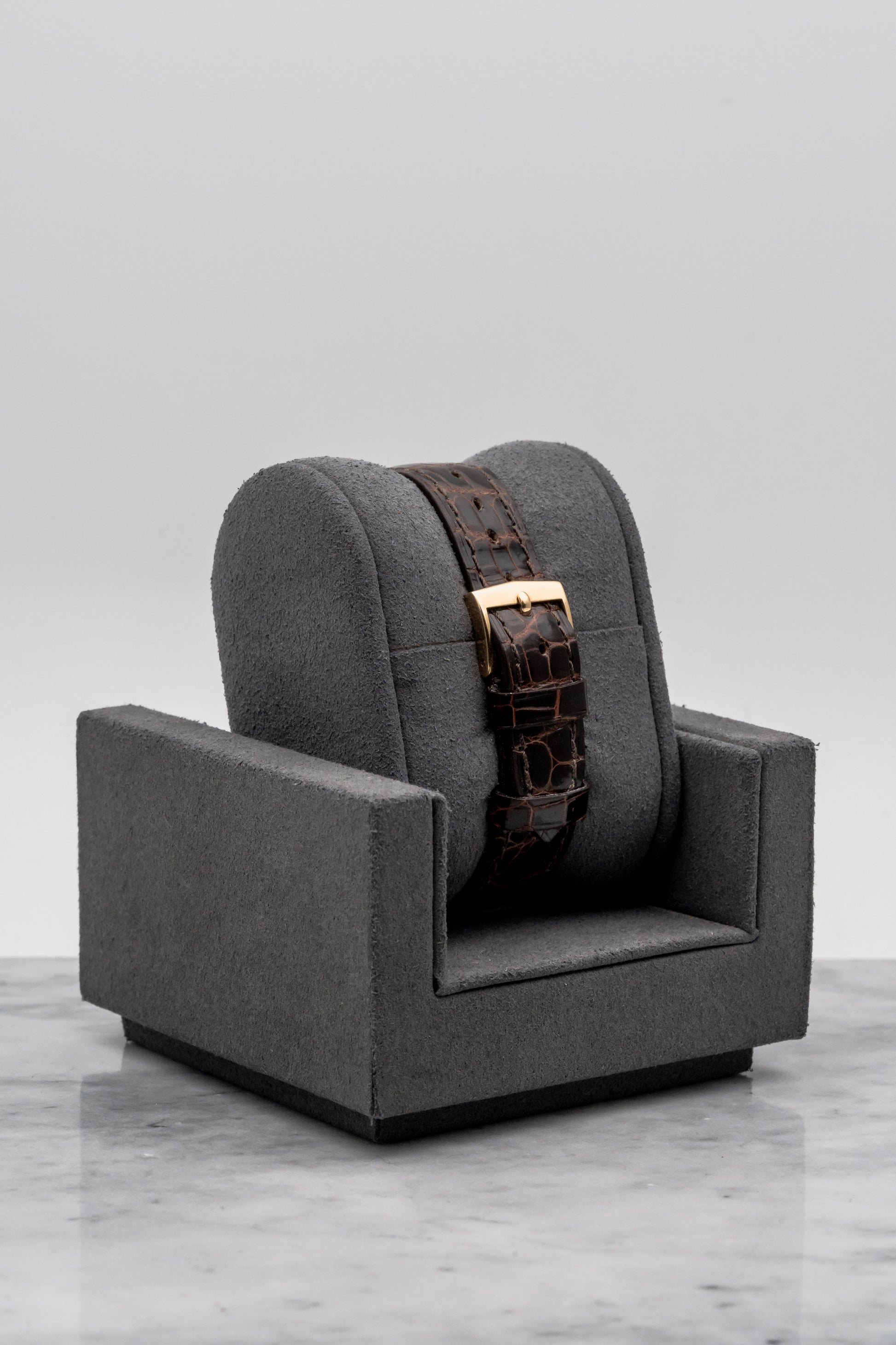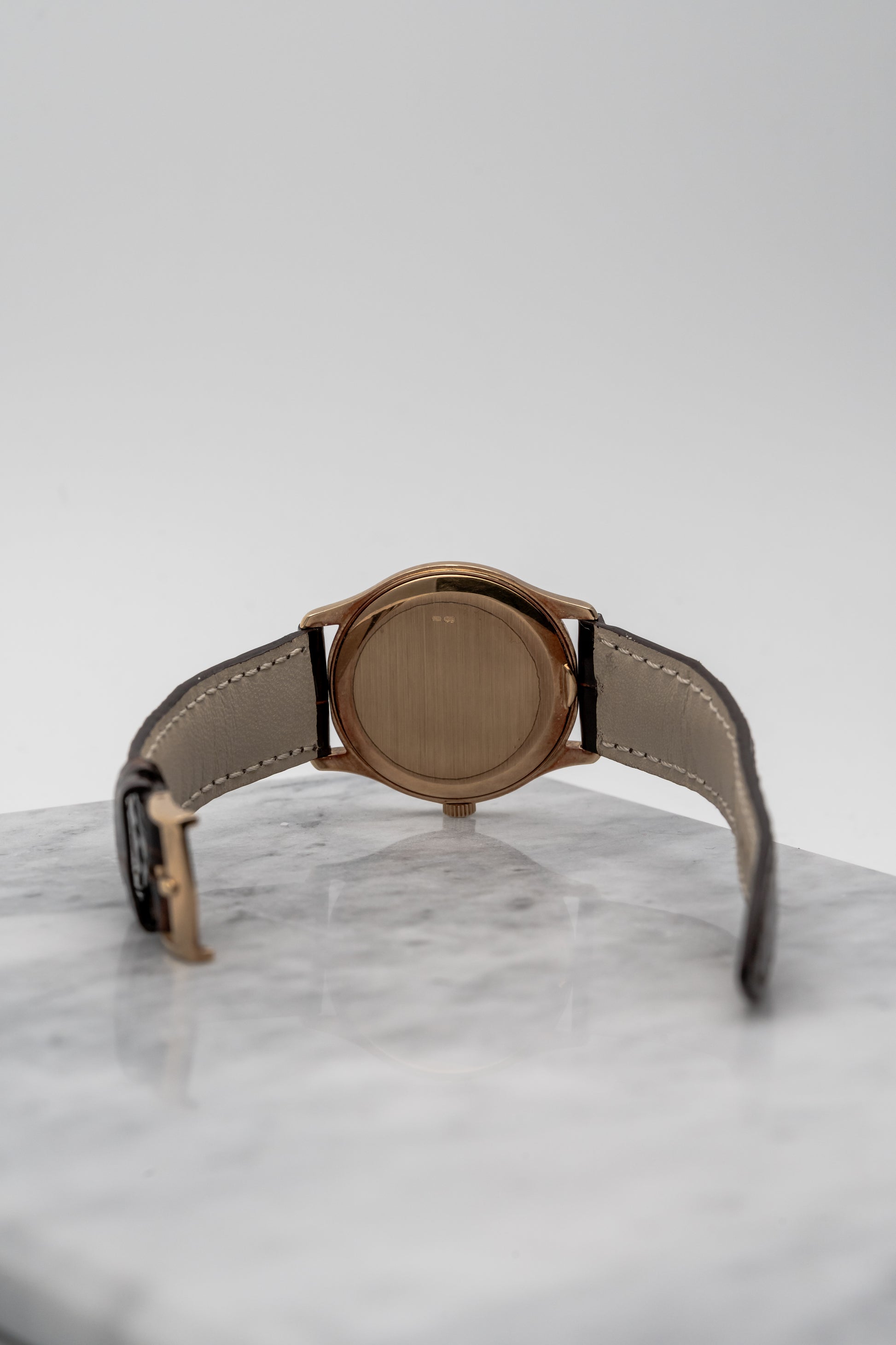 The 32mm yellow gold case wears with understated elegance. On modern wrists it feels refined and intentional rather than diminutive, especially for those who appreciate vintage proportions. The slim profile allows it to disappear under a cuff, while the warm tone of 18K yellow gold adds just enough presence in natural light. Paired with a brown leather strap and matching gold tang buckle, the watch feels balanced, discreet, and deeply personal—the sort of piece worn for oneself rather than for an audience.