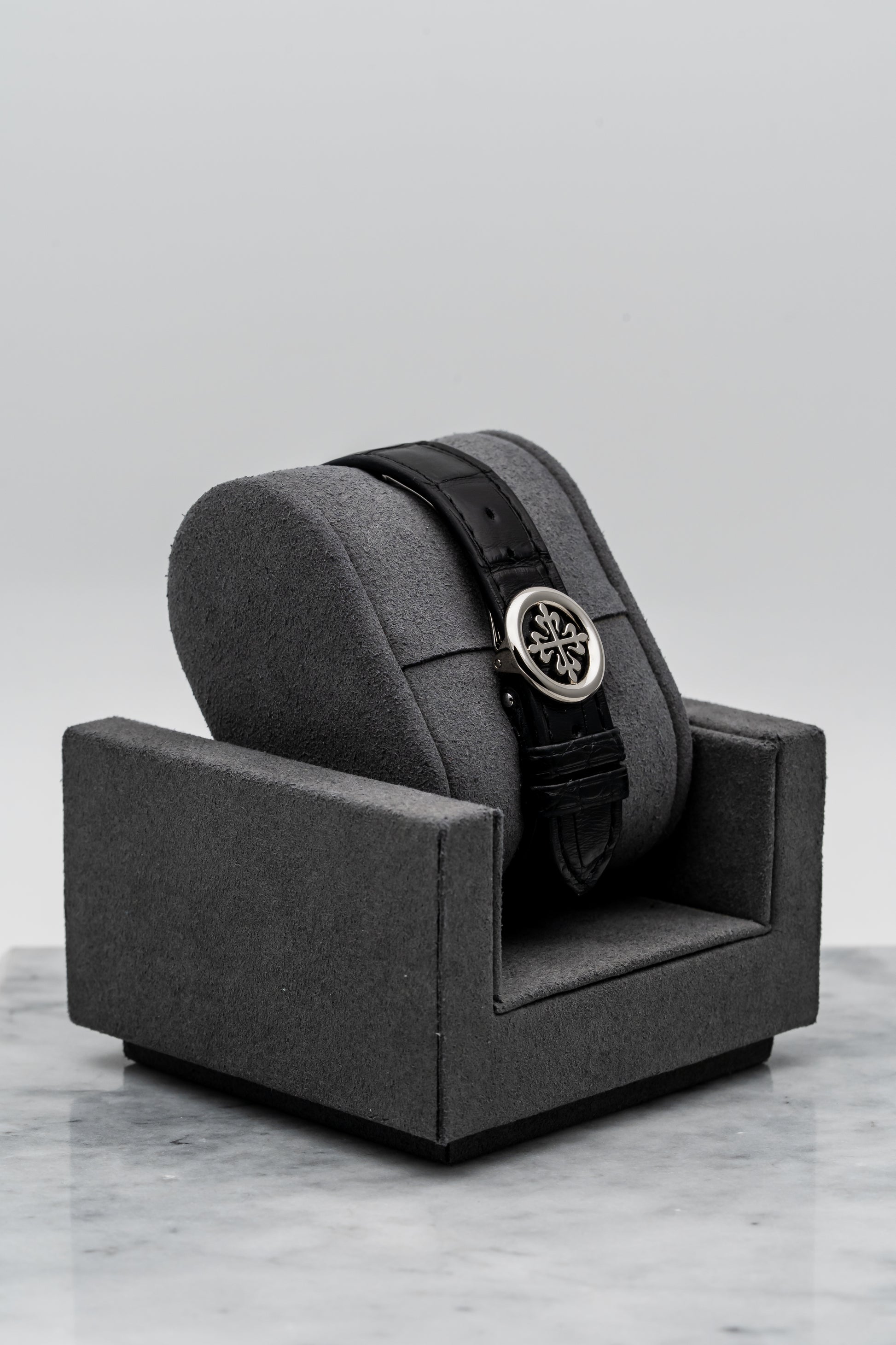 - Strap: Black Alligator Leather with 18K White Gold Deployant Clasp