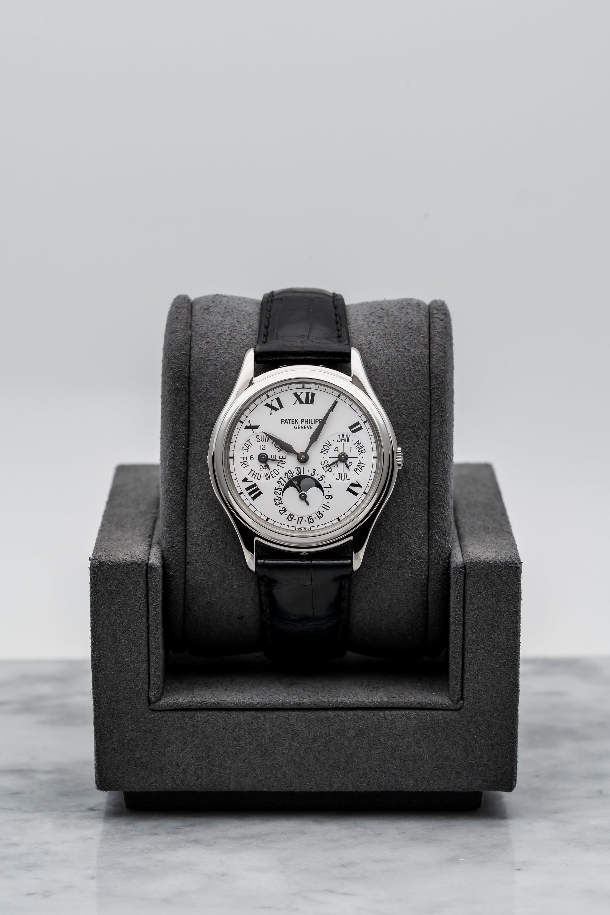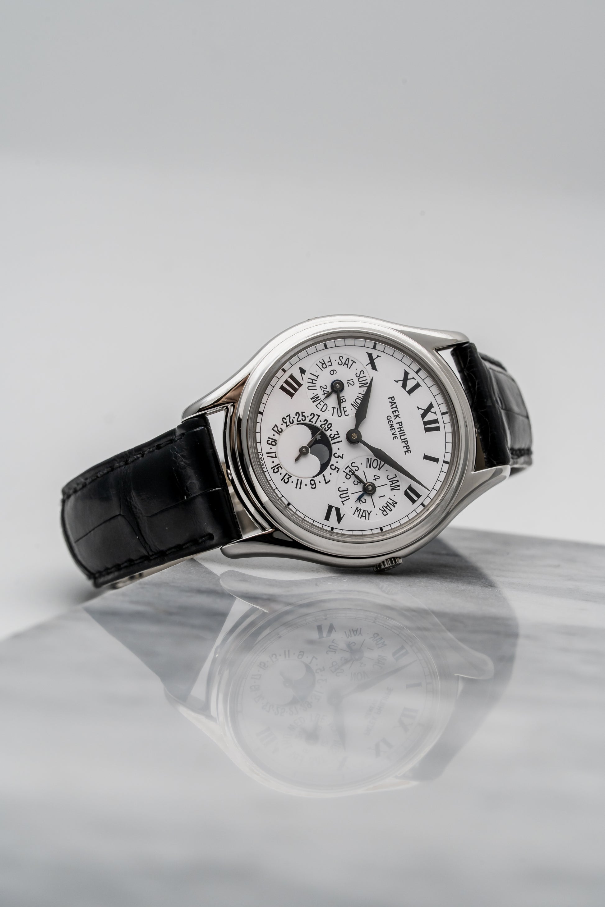 - Dial: White with Roman Numerals, Perpetual Calendar & Moonphase