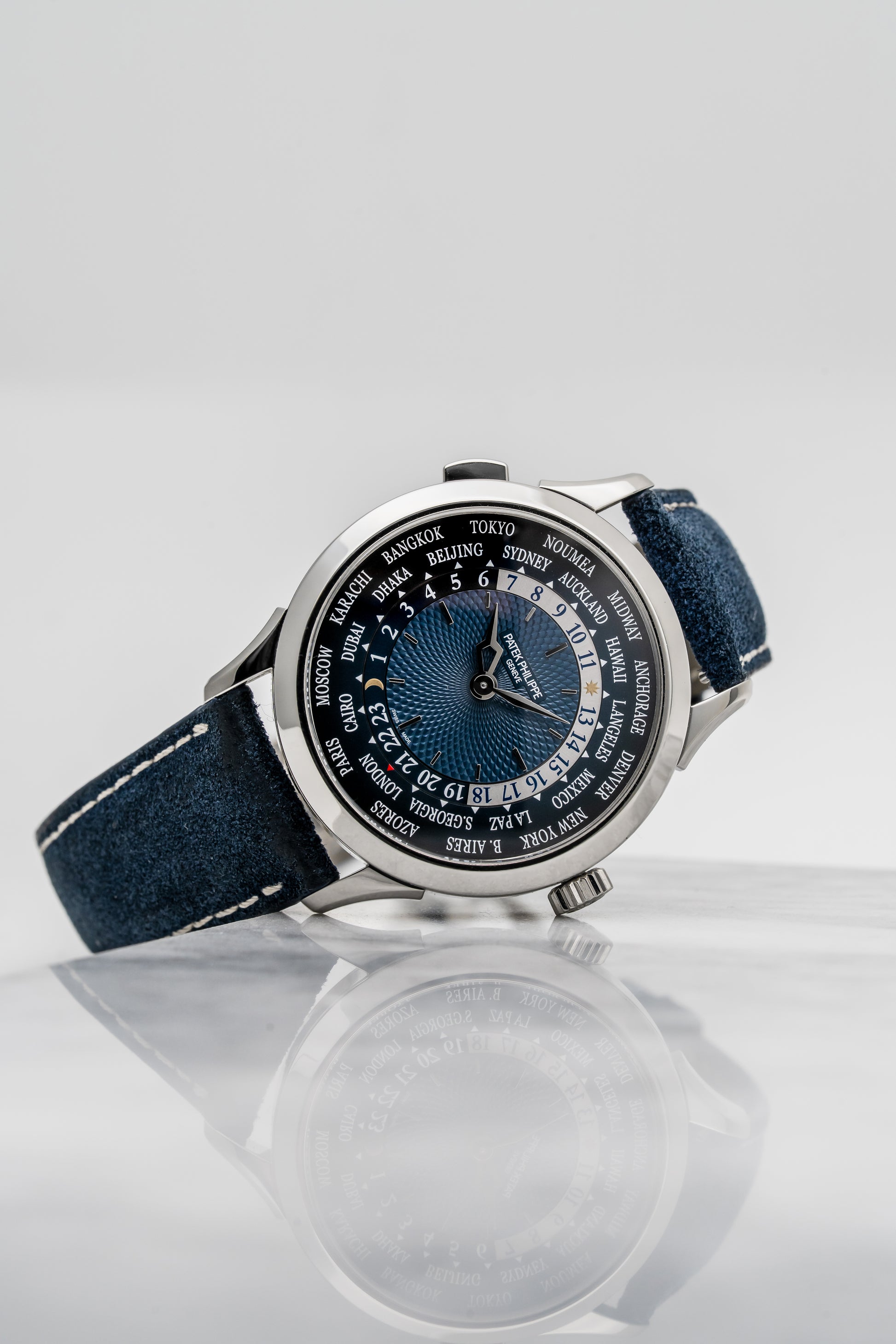 Patek Philippe World Time 5230P-001 Platinum with Blue Guilloché Dial