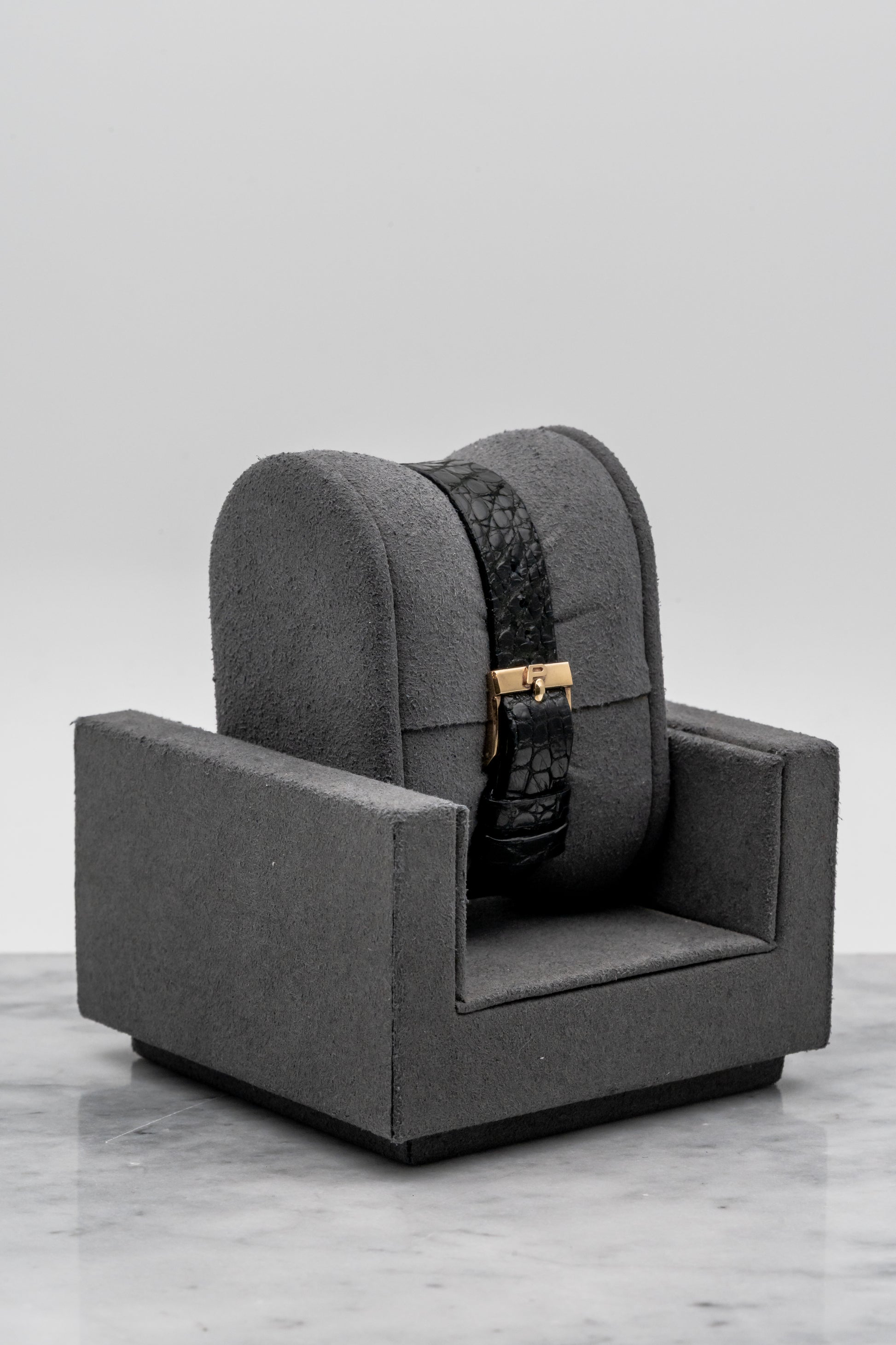 At 27mm, the watch wears with delicate, refined proportions. The yellow gold case adds warmth, complementing the rich tones of the coral dial, while the black leather strap provides contrast and structure. It sits lightly on the wrist, more like a piece of jewelry than a conventional watch, yet retains the clarity and purpose of a timepiece. The overall effect is intimate and expressive without being overt.