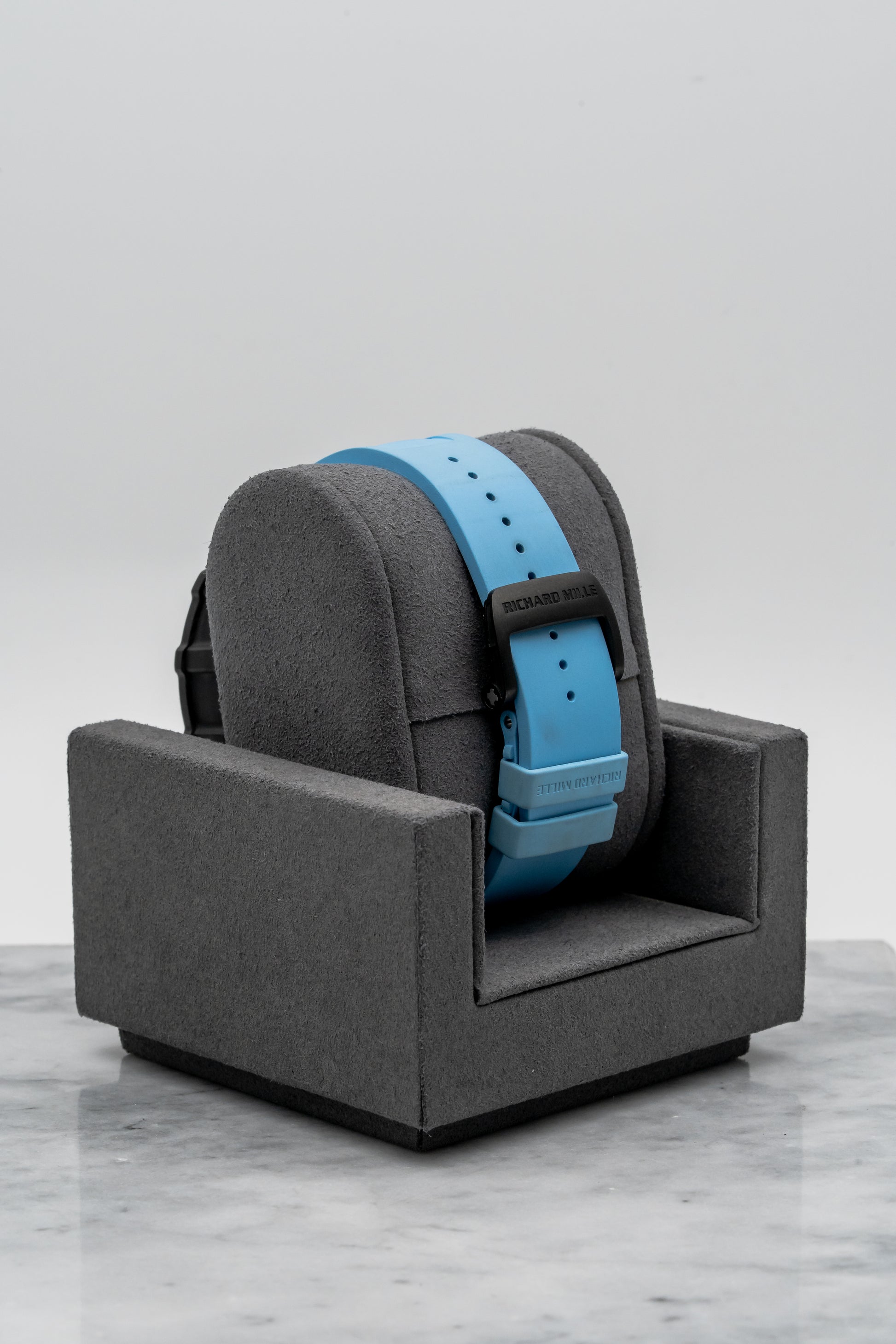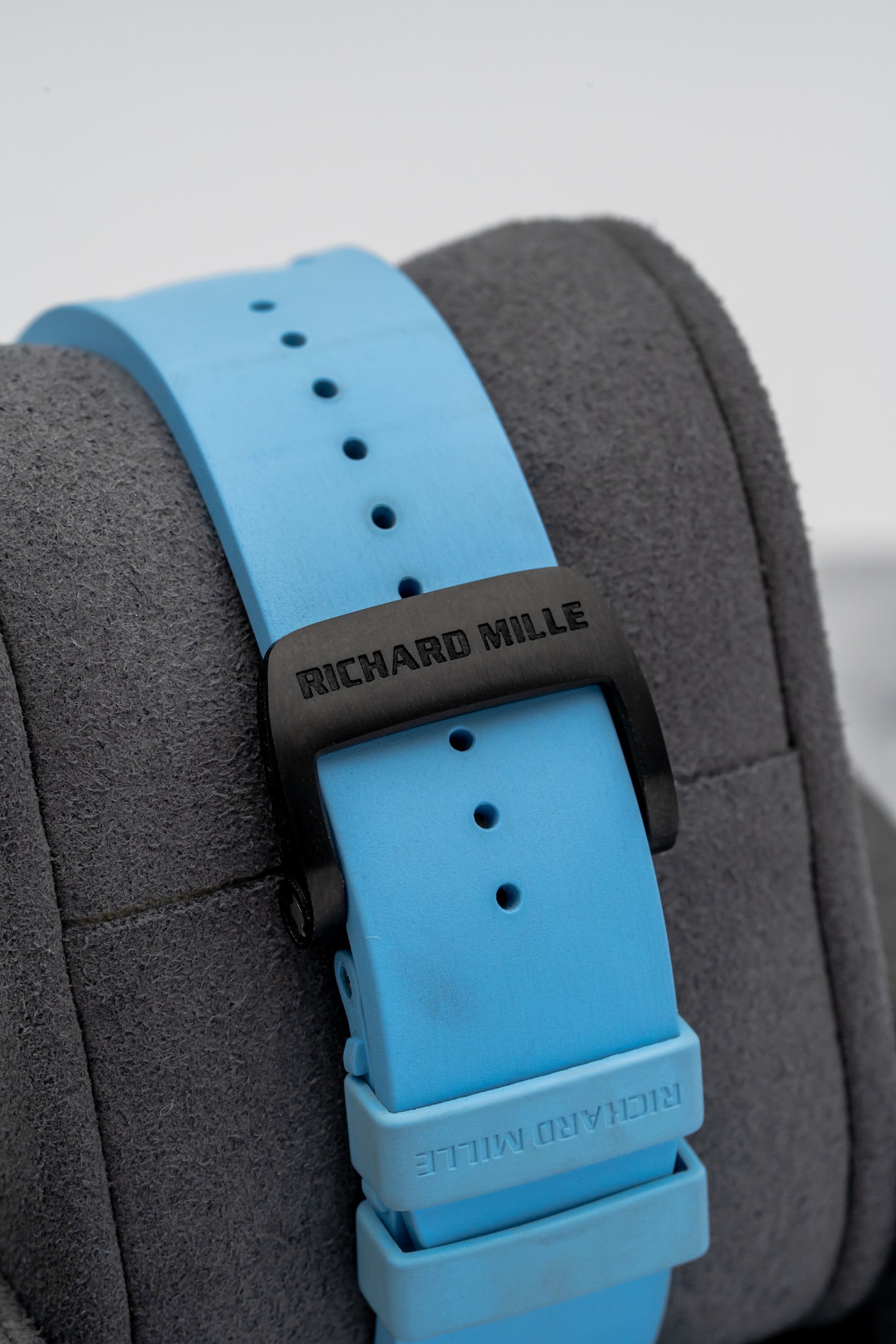 - Strap: Blue Rubber Strap with Titanium Deployant Clasp