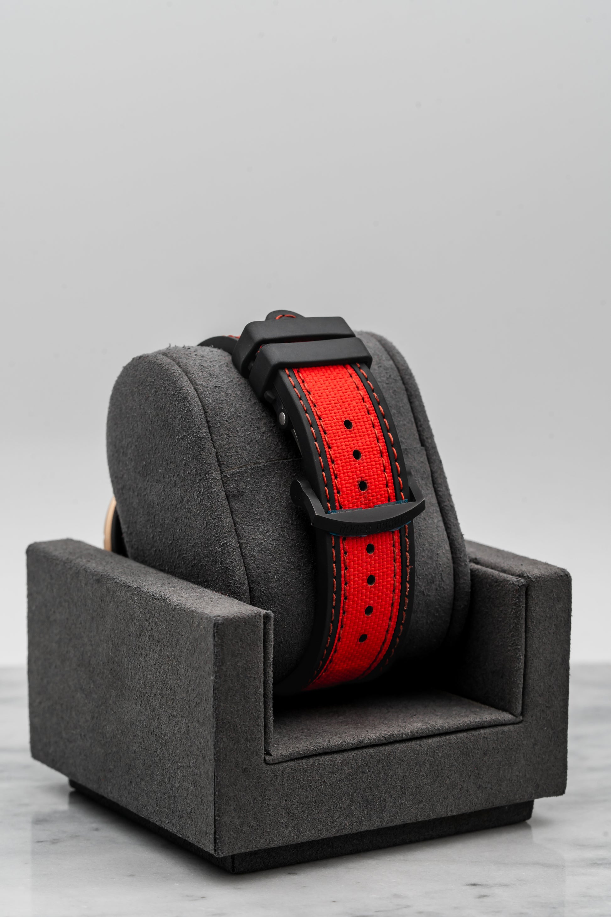 - Strap: Red Rubber with Quick‑Release & Deployant Buckle