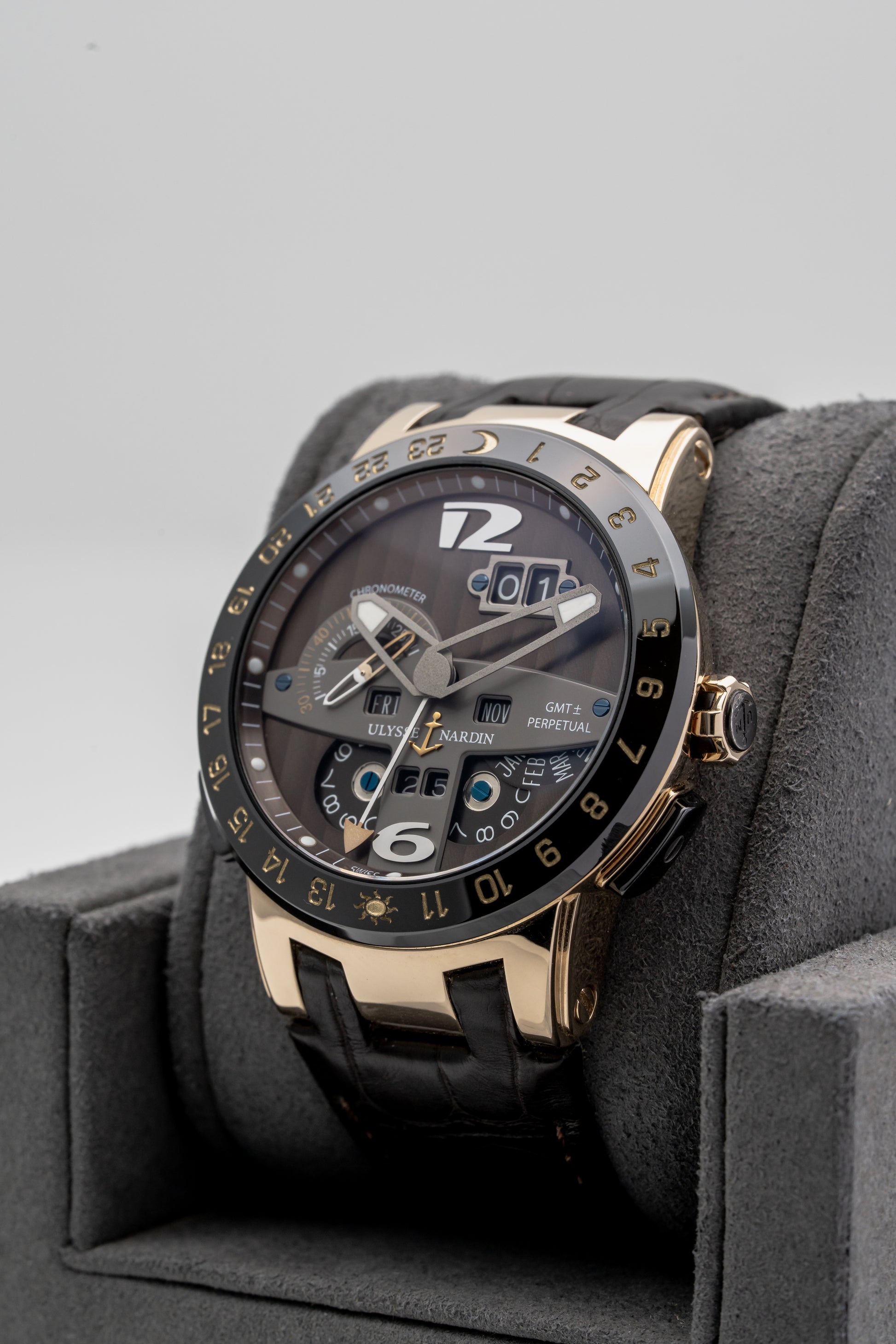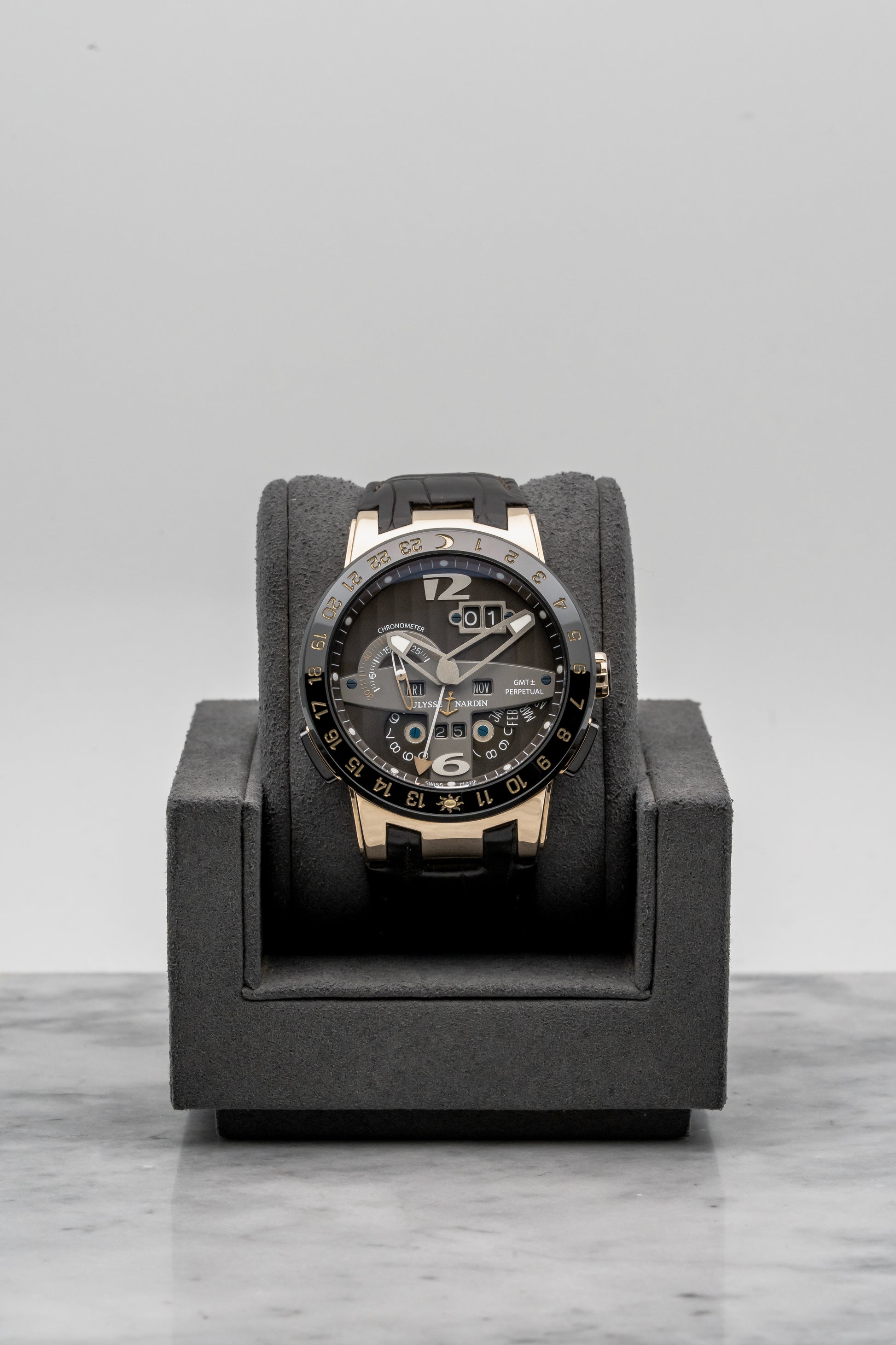 Ulysse Nardin has long occupied a distinct position in high watchmaking, pairing classical complication with an unmistakably modern point of view. In the early 2000s, the brand became particularly respected for its approach to calendar watches, rethinking how complex information could be adjusted and lived with. The El Toro GMT Perpetual belongs to this period, reflecting Ulysse Nardin’s willingness to challenge convention while remaining mechanically serious.