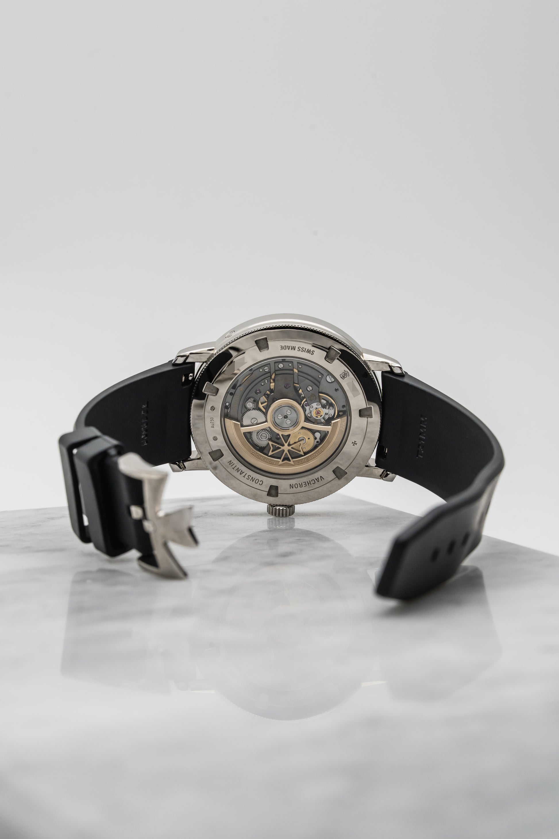 - Dial: Openworked Slate Gray Dial with Transparent Sapphire Calendar Discs